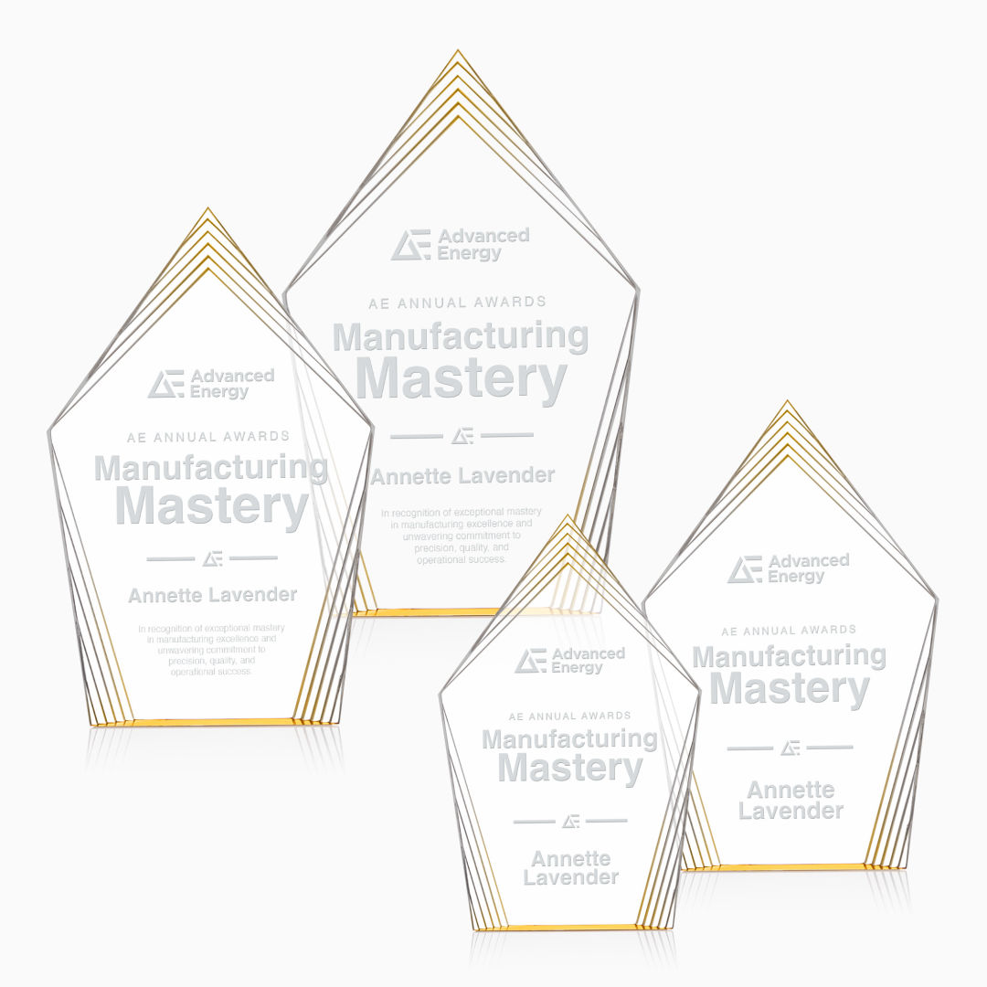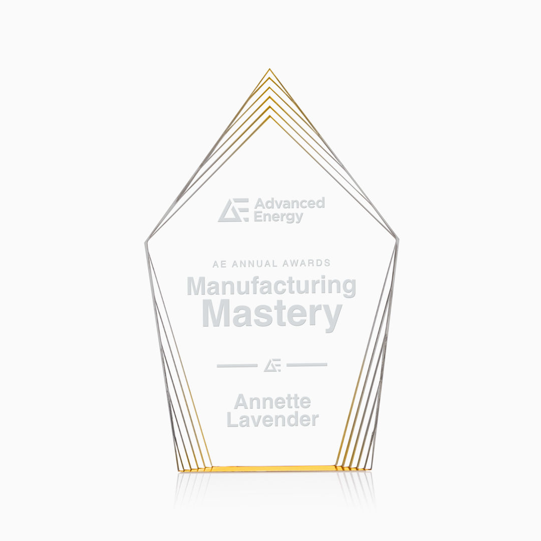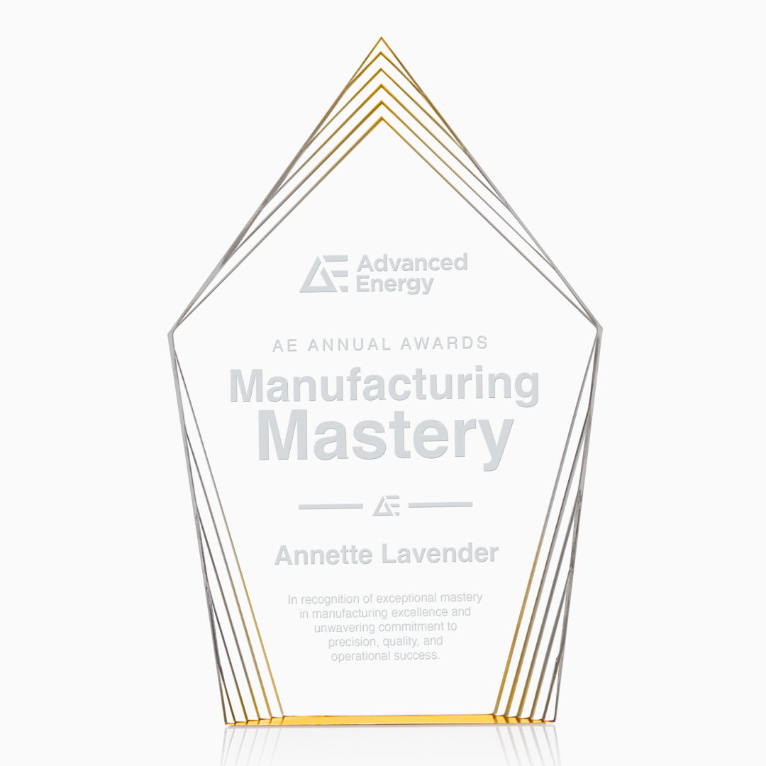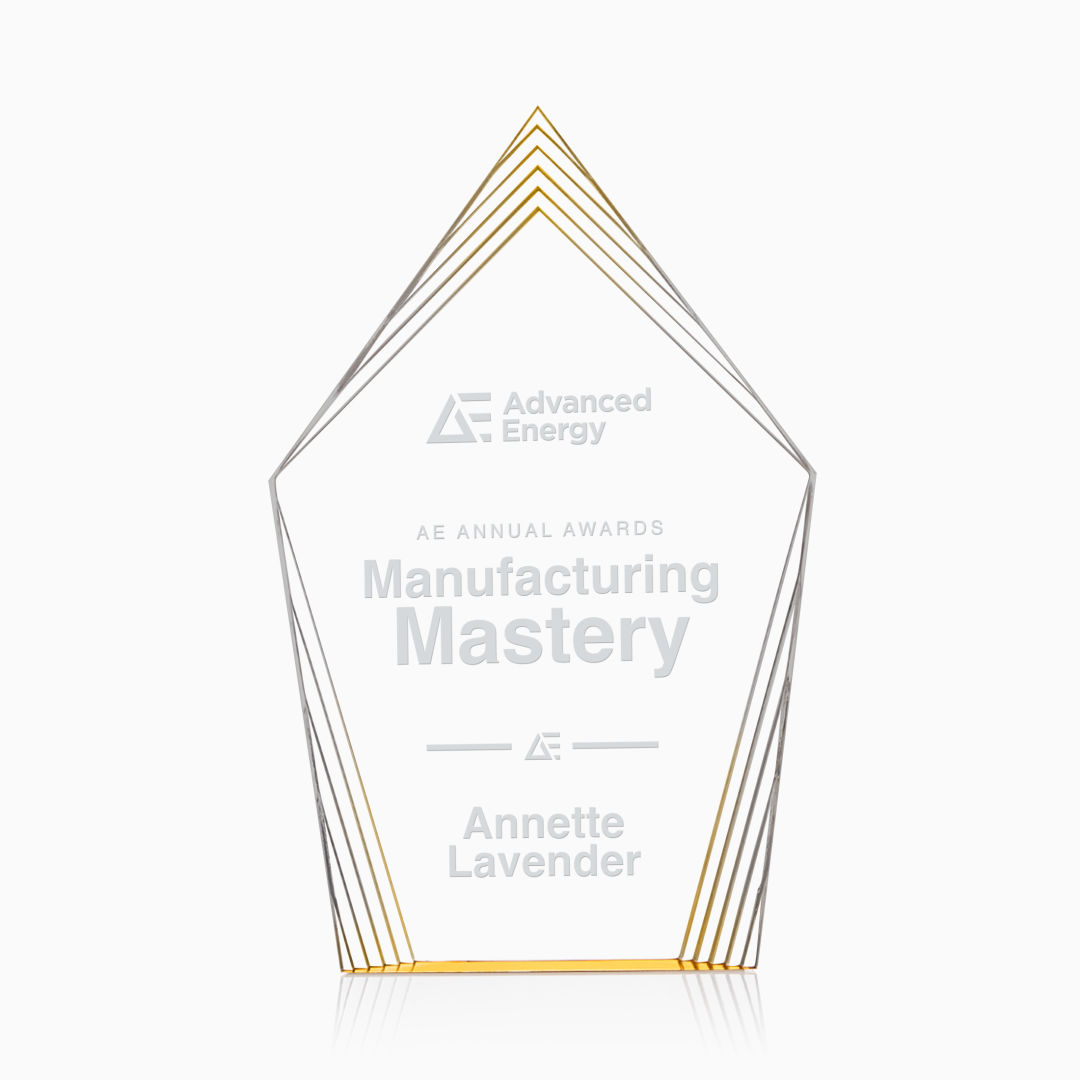 The Grayson Award is a striking acrylic recognition piece that features layered geometric contours for a modern, dimensional look. Crafted from premium clear acrylic with precision-cut detailing, it offers exceptional clarity and a polished, high-end finish. Ideal for corporate recognition and achievement awards, the Grayson Award makes a bold statement while remaining elegant and timeless. 3.875″ W x 6.0″ H x 1.0″ D