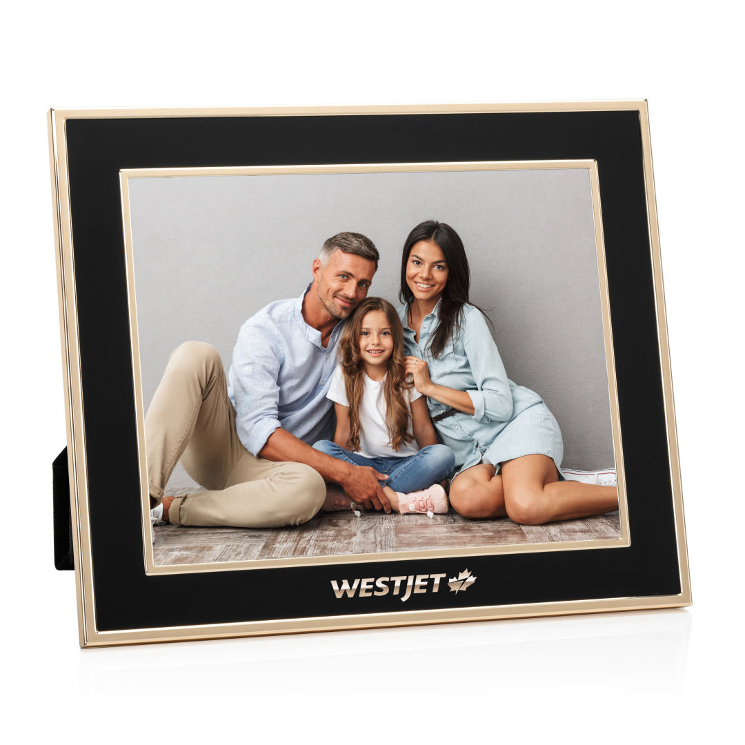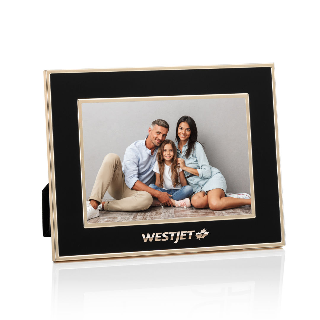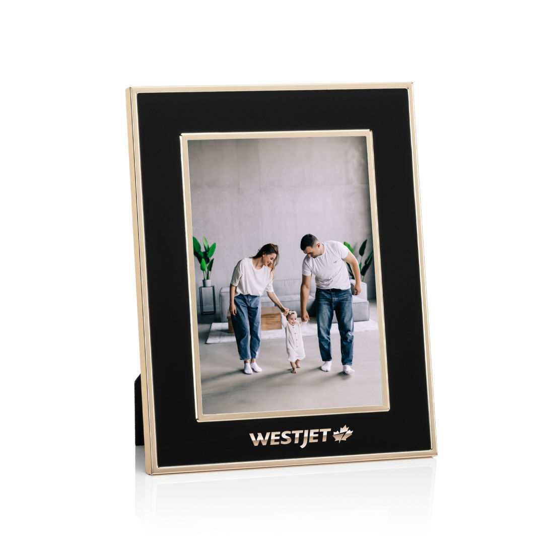 The Grenada Frame features a bold black border accented with elegant gold outlining, creating a sophisticated and timeless display. Perfect for showcasing cherished memories, this frame adds a touch of luxury to any space. 8.25″ W x 6.25″ H