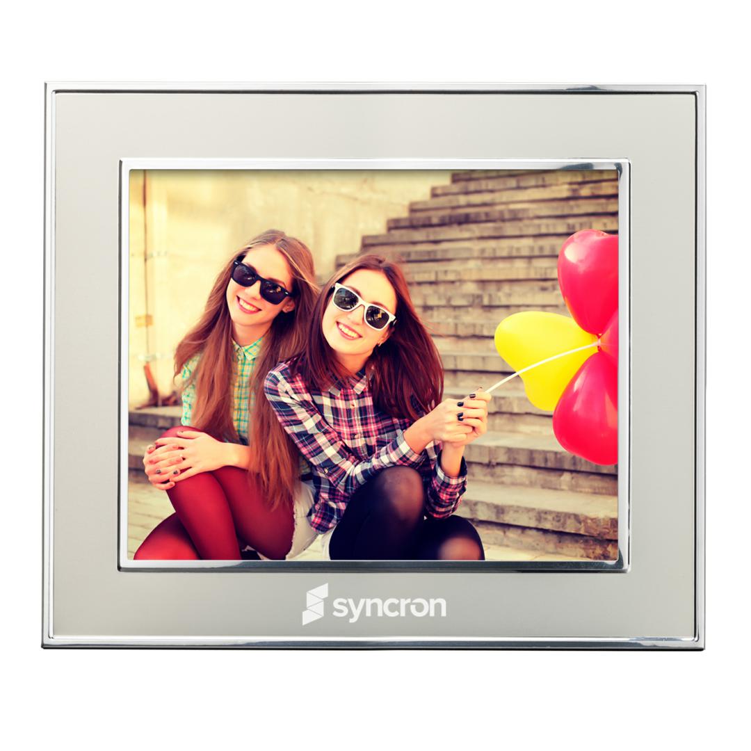 This subtle matte champagne finish is contrasted with bright polished silver edges to create a sophisticated modern frame. 8.25″ W x 6.25″ H