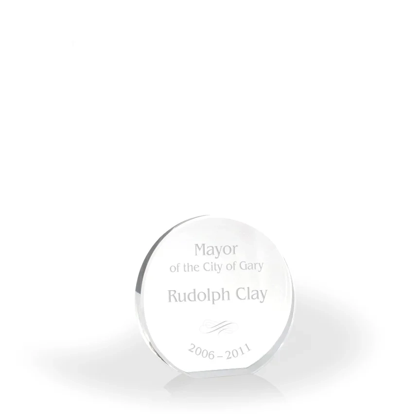 The Halo Beveled Crystal Award is a classy and elegant addition to any award project. Available in 3 sizes (4″, 5″ and 6″ tall) this gorgeous polished crystal award works well for award programs with 3 levels, and when you want to maintain a consistent look between departments and types of awards in your organization. 5″ H x 5.25″ W x 1″ D