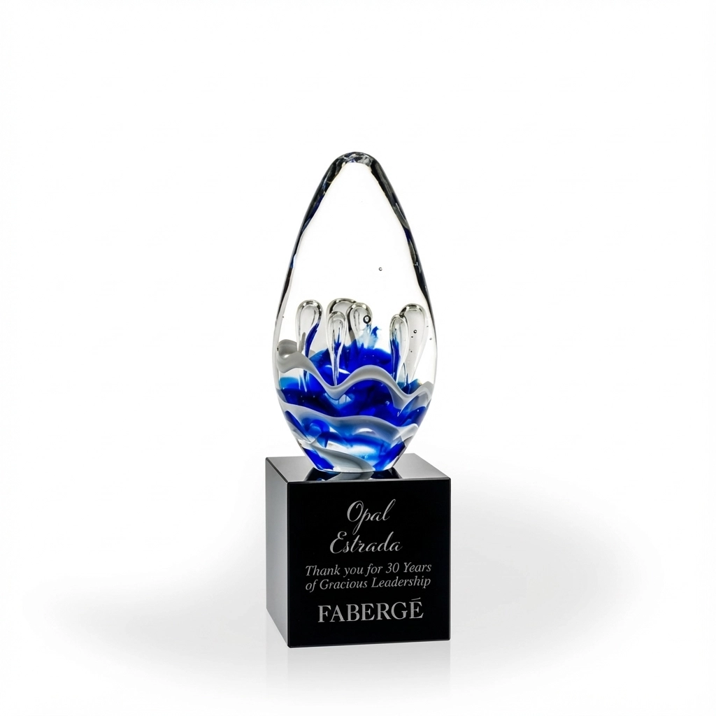 Celebrate outstanding accomplishments with the exquisite Halsted Art Glass Award. Crafted from premium glass, this award boasts a mesmerizing blue base that beautifully contrasts with the clear, sculptural top, creating a truly unique and memorable piece. Its elegant design and superior craftsmanship make it the perfect symbol of recognition for exceptional performance, dedication, or milestones.