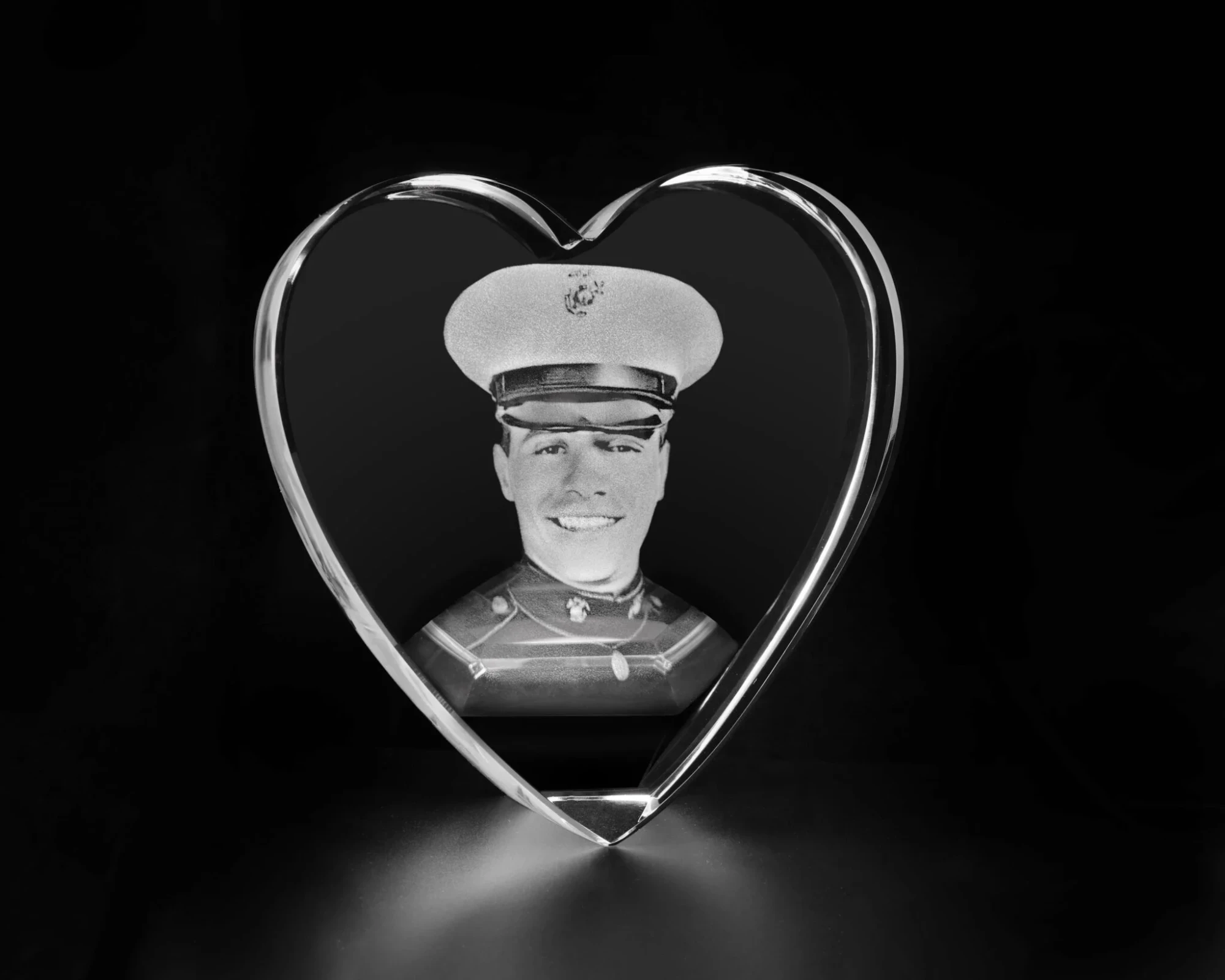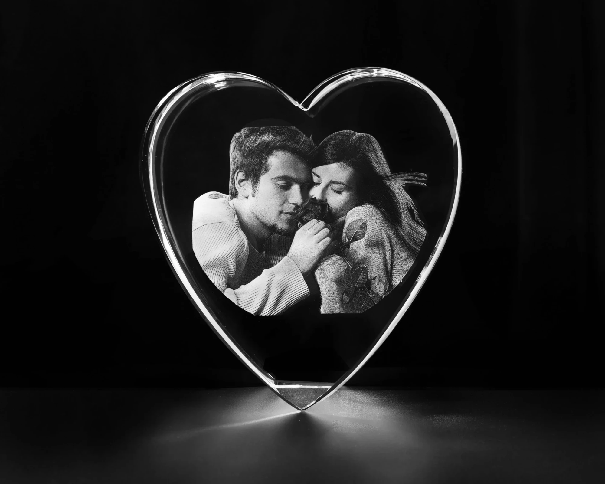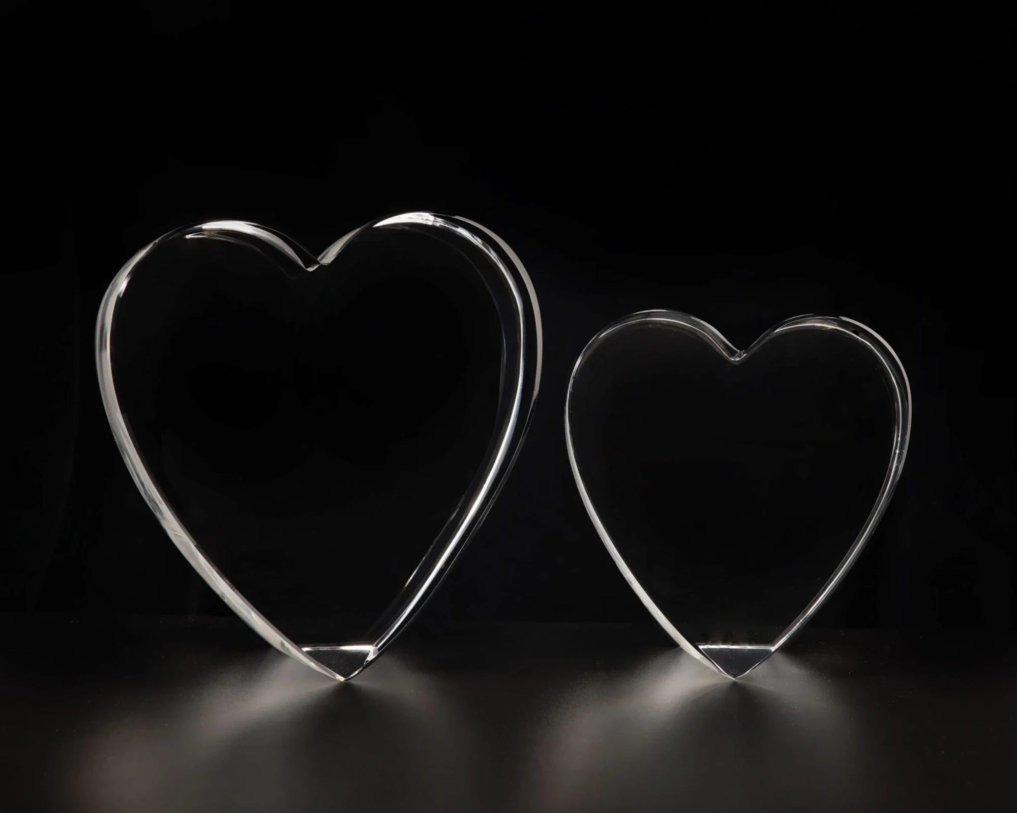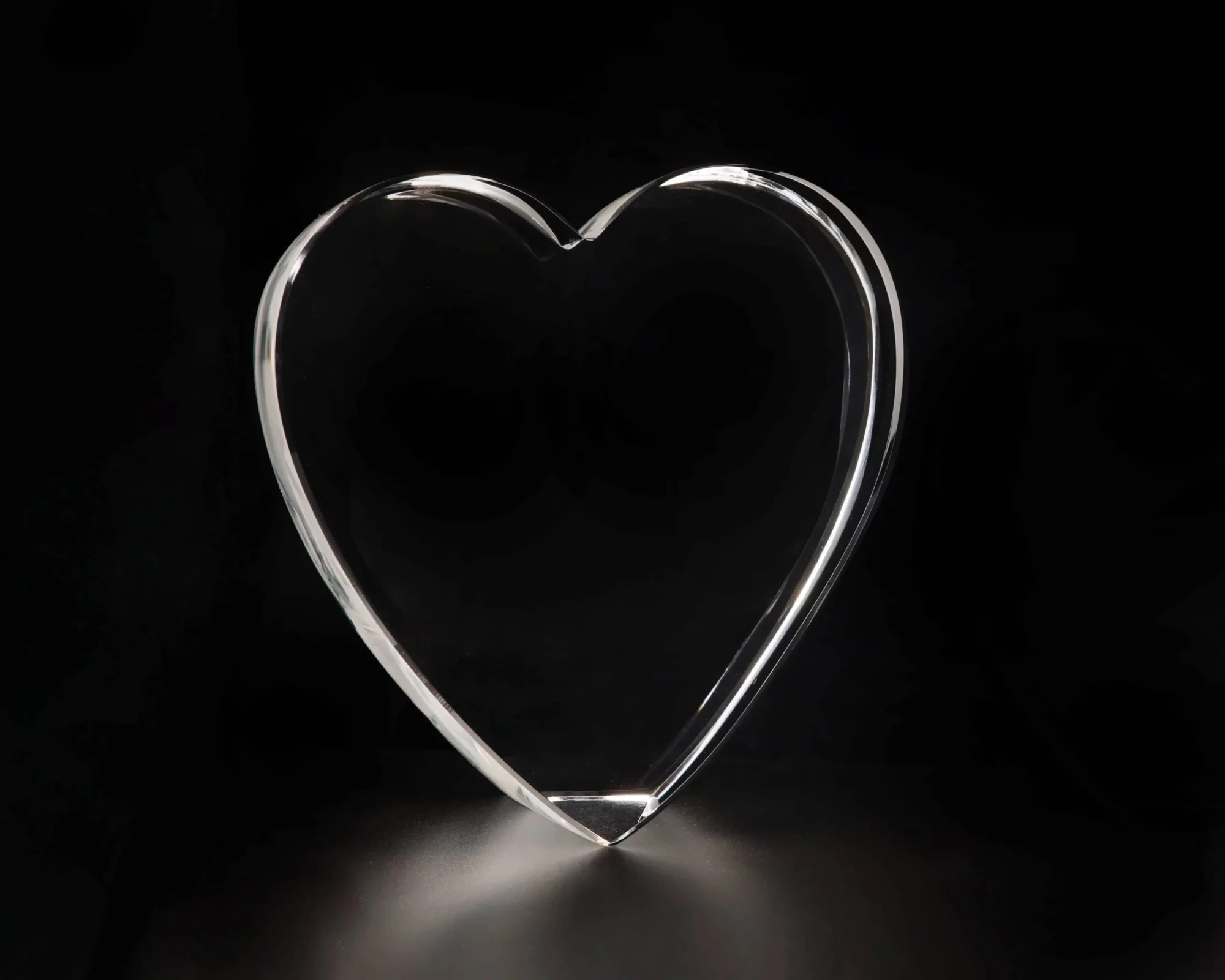 The Harmony Heart with its highly polished edges. Manufactured using the finest quality Clear Optic Crystal it’s self standing cut corner positions the Heart for perfect viewing of the engraving. The Harmony Heart is perfect for abrasive etching or sub surface laser engraving and is shipped in a premium presentation box. 3.9″ H x 3.5″ W x 2.4″ D