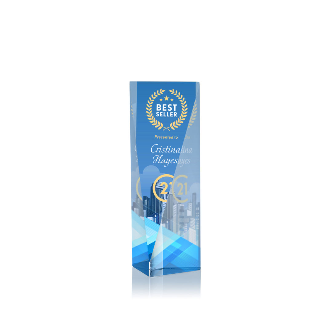 Recognize Excellence with our spectacular Henderson Optical Crystal VividPrint™ Award. A tall freestanding crystal work of art features a sheer front facet that tapers down to a triangular bottom creating a magnificent window into your words of inspiration. Shipped in a satin-lined black presentation gift box and includes our vibrant full color VividPrint™ decoration. 2.25″ W x 6.0″ H x 2.5″ D