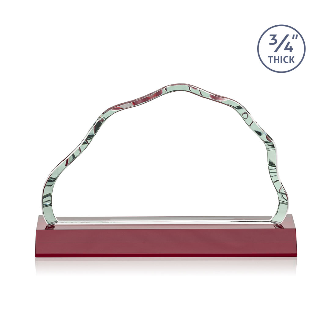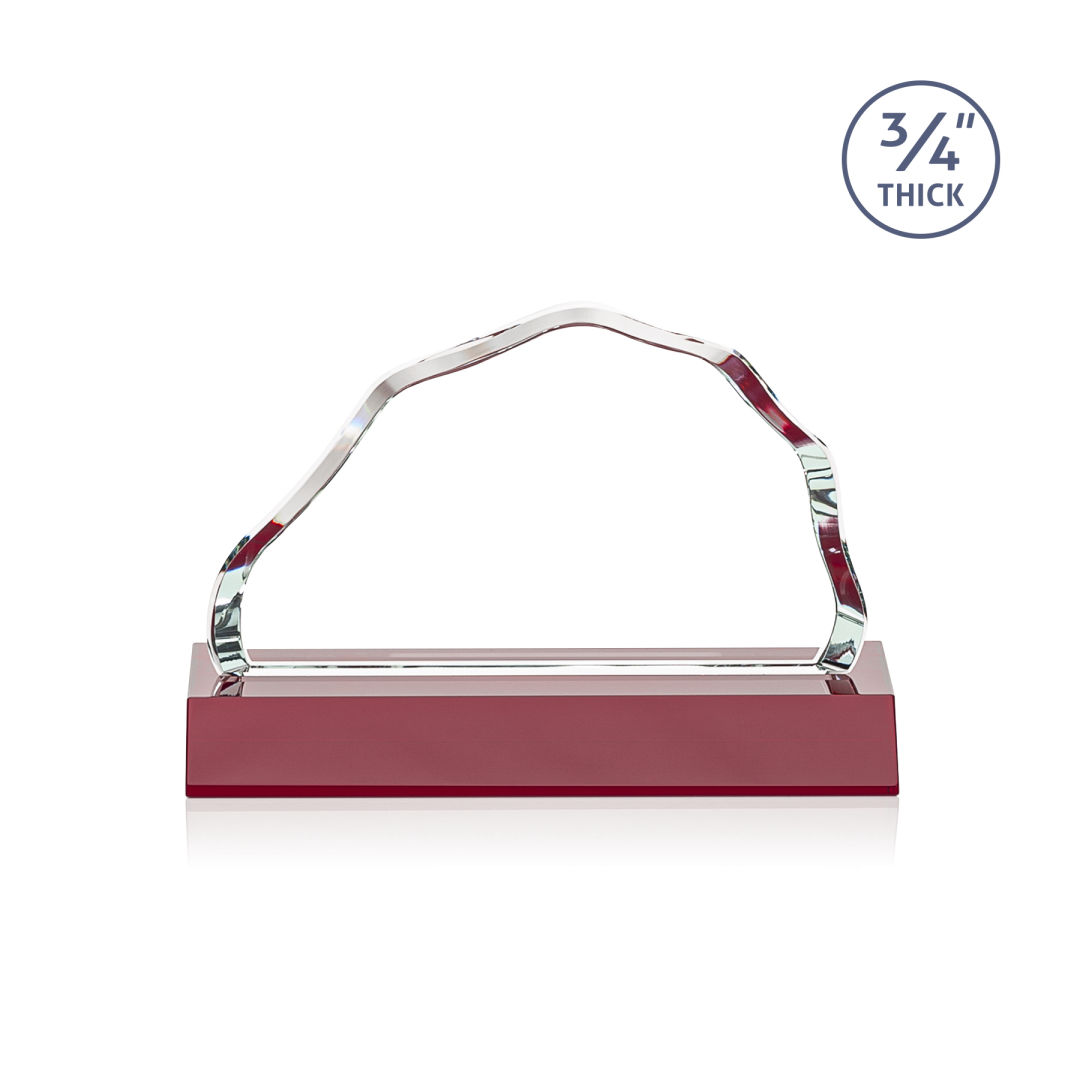 The Starfire Crystal Highbridge Award is a magnificent ¾” thick beveled iceberg that forms an incredible frame for your mountainous achievement. The colored crystal base refracts through the edges of the award for a dazzling show of ruby red reflections. 2nd Position Etch Optional. 5.5″ W x 3.25″ H x 0.75″ D