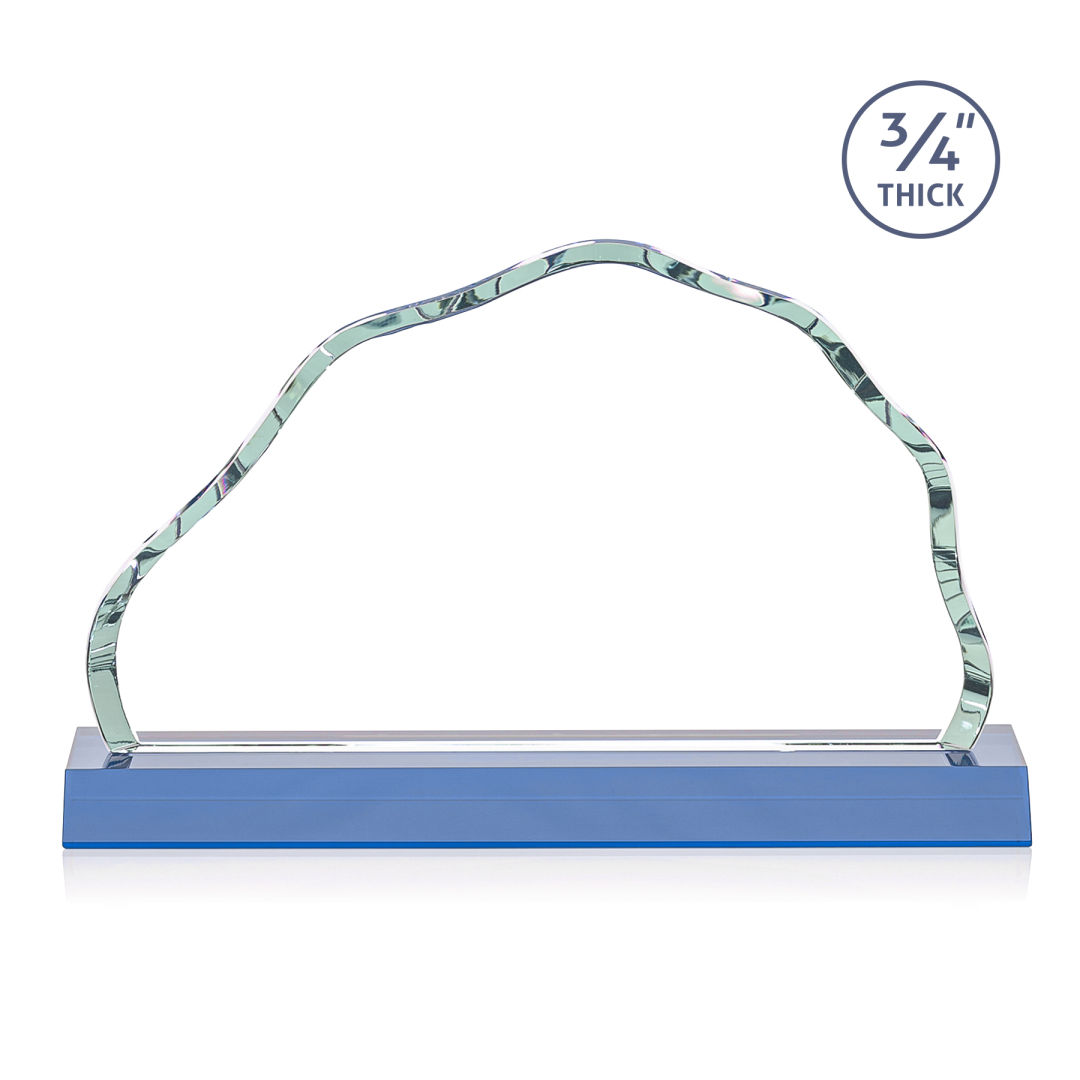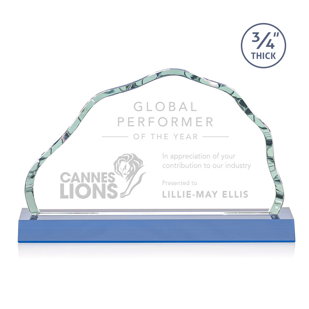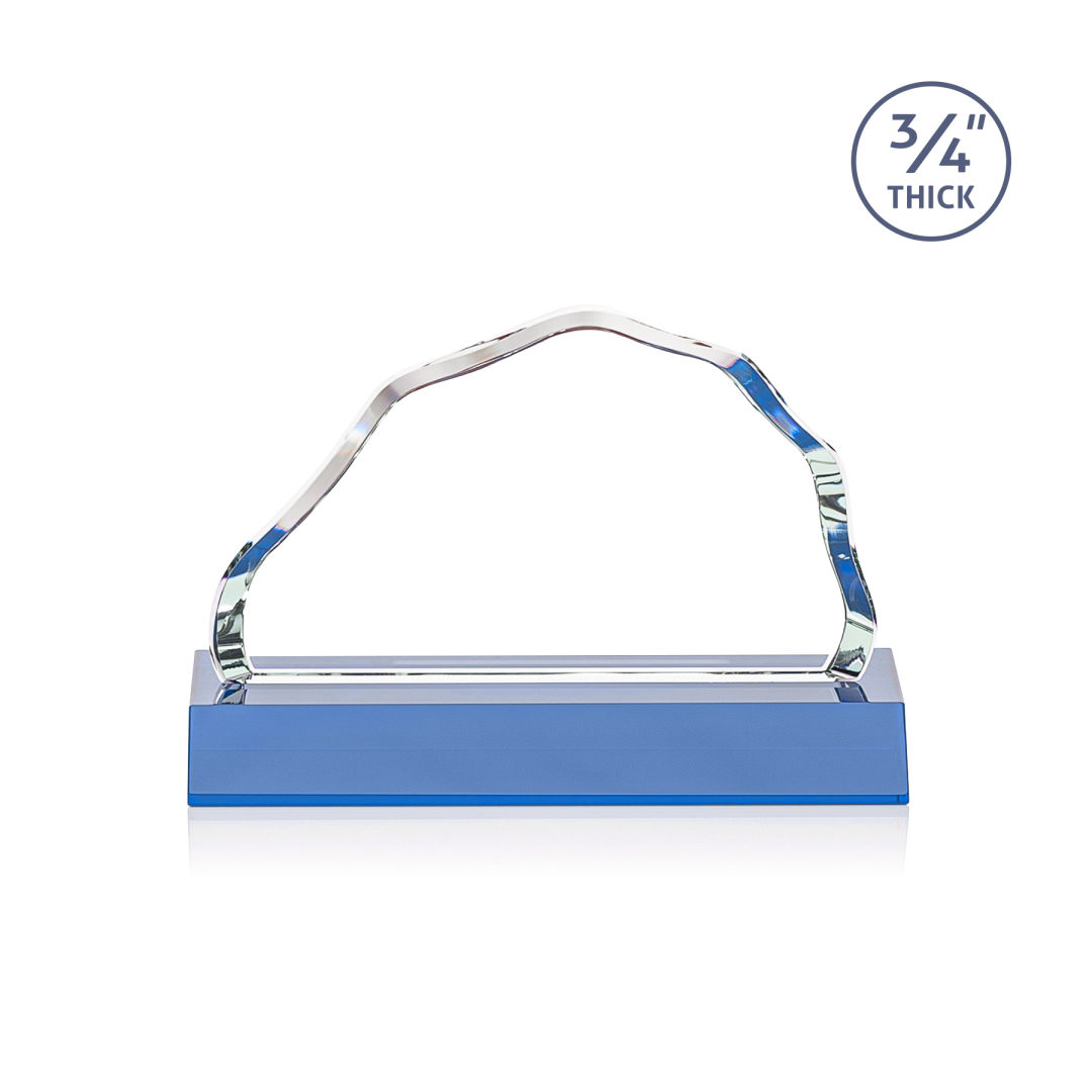 The Starfire Crystal Highbridge Award is a magnificent ¾” thick beveled iceberg that forms an incredible frame for your mountainous achievement. The colored crystal base refracts through the edges of the award for a dazzling show of sky blue reflections. 2nd Position Etch Optional. 5.5″ W x 3.25″ H x 0.75″ D