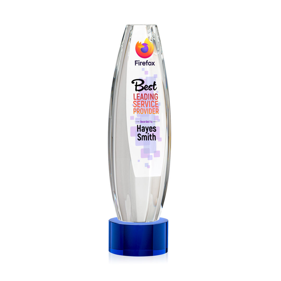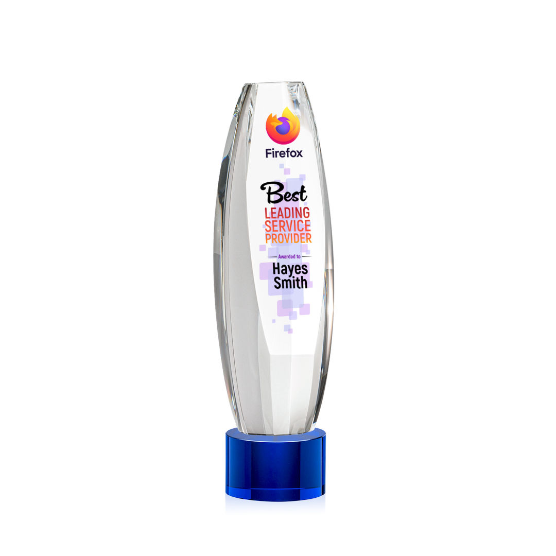 Elevate recognition to an extraordinary level with our magnificent Hoover VividPrint™ Award. Meticulously crafted from Optical Crystal, this multifaceted masterpiece is a symbol of brilliance and achievement. Its dynamic form captures and refracts light, creating a mesmerizing display that epitomizes the heights of excellence. The large sheered off face provides ample room for your words of recognition. Mounted on a Clear, Emerald, Sapphire, or Ebony Optical Crystal Base. Packaged in a black satin-lined presentation gift box. 2.5″ W x 9.5″ H