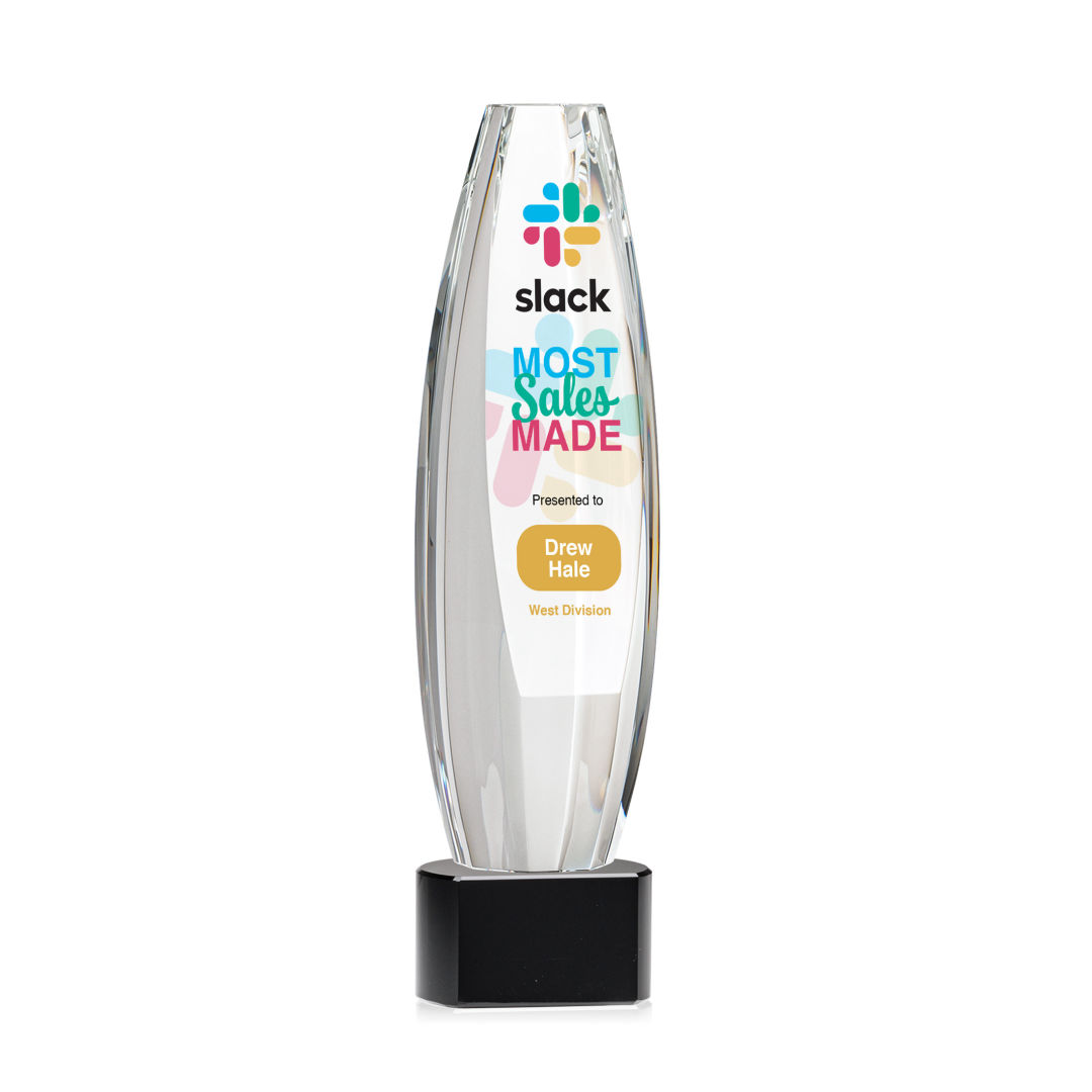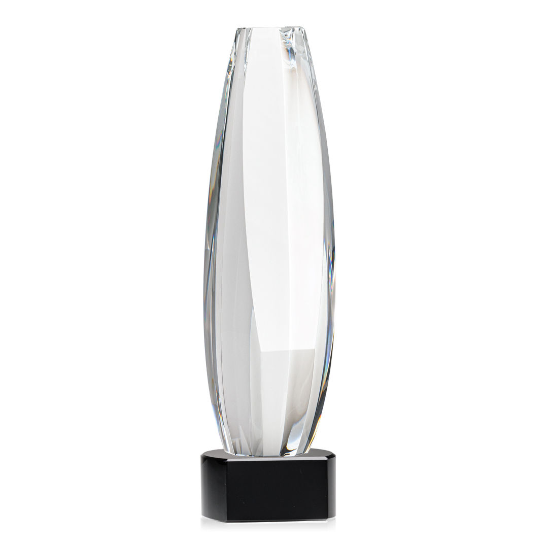 Elevate recognition to an extraordinary level with our magnificent Hoover VividPrint™ Award. Meticulously crafted from Optical Crystal, this multifaceted masterpiece is a symbol of brilliance and achievement. Its dynamic form captures and refracts light, creating a mesmerizing display that epitomizes the heights of excellence. The large sheered off face provides ample room for your words of recognition. Mounted on a Clear, Emerald, Sapphire, or Ebony Optical Crystal Base. Packaged in a black satin-lined presentation gift box. 2.5″ W x 9.0″ H