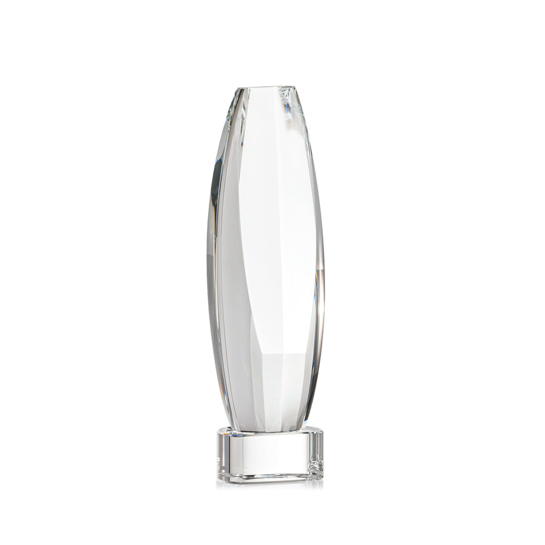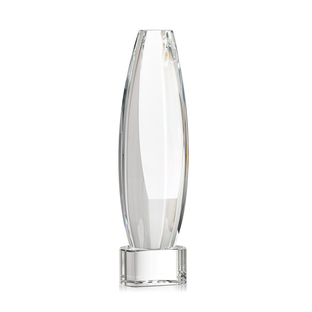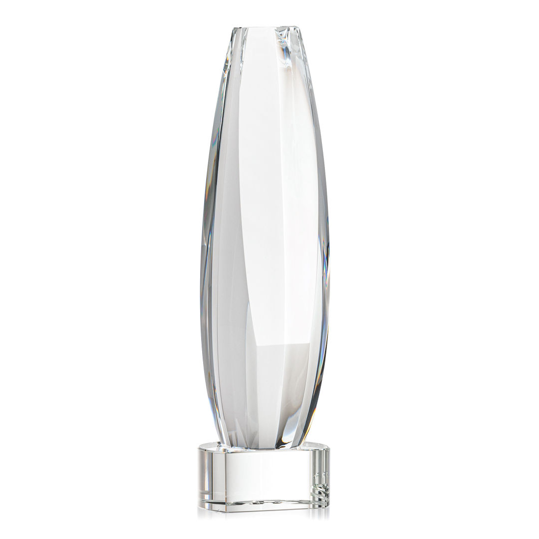 Elevate recognition to an extraordinary level with our magnificent Hoover VividPrint™ Award. Meticulously crafted from Optical Crystal, this multifaceted masterpiece is a symbol of brilliance and achievement. Its dynamic form captures and refracts light, creating a mesmerizing display that epitomizes the heights of excellence. The large sheered off face provides ample room for your words of recognition. Mounted on a Clear, Emerald, Sapphire, or Ebony Optical Crystal Base. Packaged in a black satin-lined presentation gift box. 2.5″ W x 9.0″ H