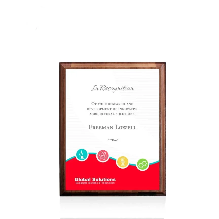 The Iconic Full-Color Plaque is a great option for a wide variety of award titles when color graphics are a priority. The walnut finish composite plaque has a classic beveled edge and can be hung either vertically or horizontally. It is available in 6″ x 8″, 8″ x 10 and 9″ x 12″ sizes. The plates are printed in full color and can be designed to include your logo, text, recipient information and any graphics from your event. 10″ H x 8″ W x 0.75″ D