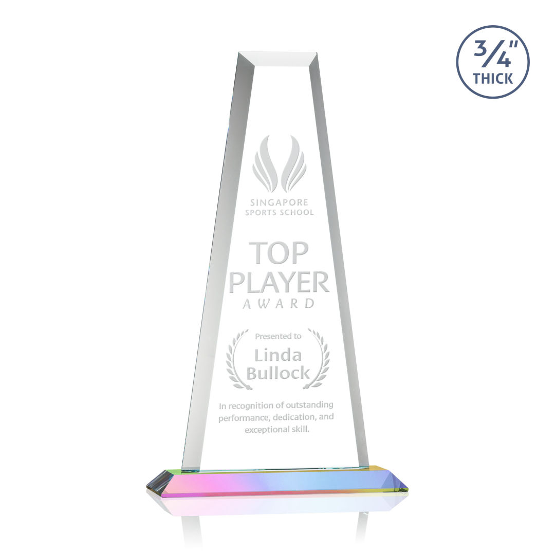 The elegant Imperial Award reflects a 0.75″ thick Starfire Crystal tower and showcases stoic bevels throughout the piece. With an opulent Starfire Crystal Prismatic base, this striking award is an outstanding recognition gesture. 7.0″ W x 10.75″ H x 3.0″ D
