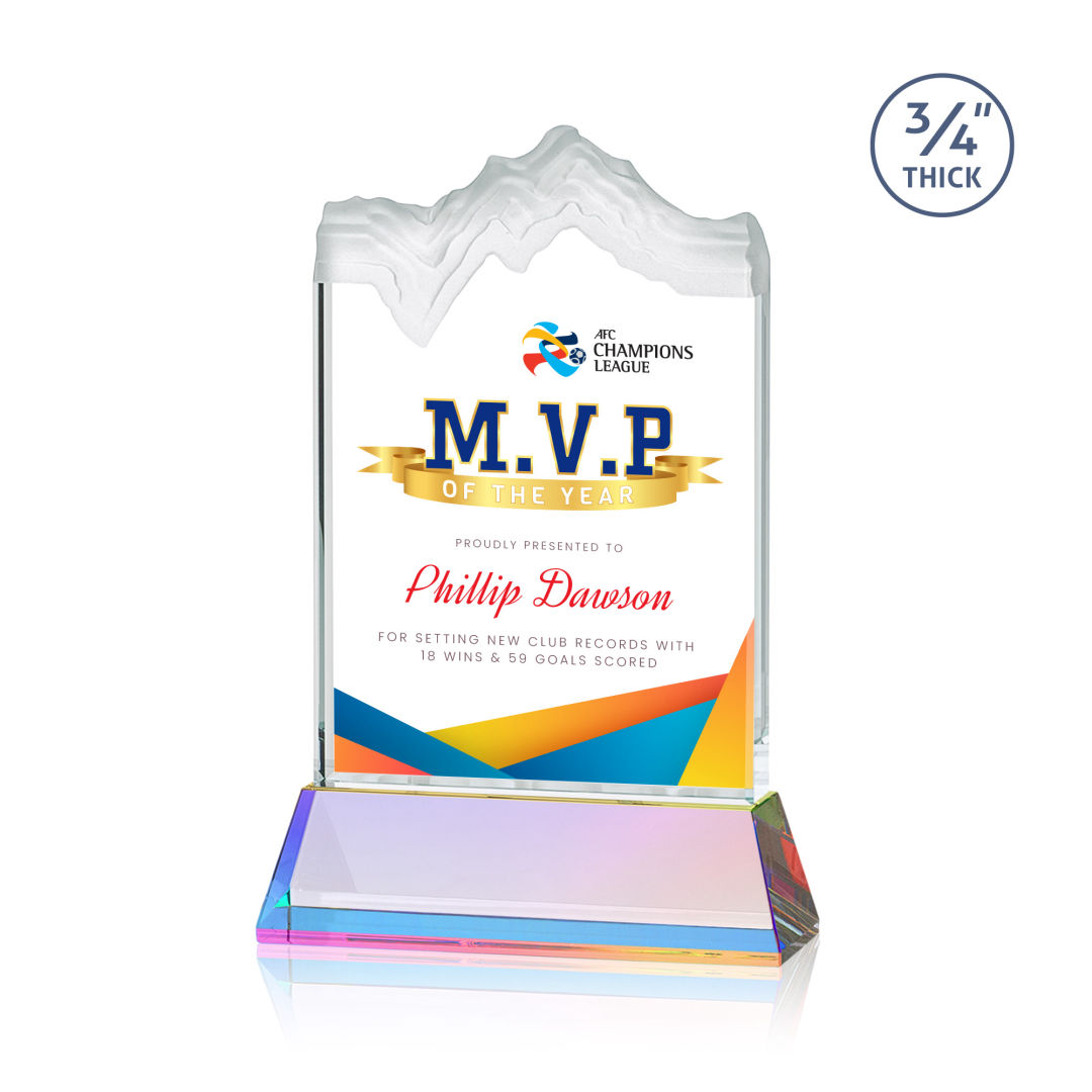 The elegant Imperial Award reflects a 0.75″ thick Starfire Crystal tower and showcases stoic bevels throughout the piece. With an opulent Starfire Crystal Alberton base, this striking award is an outstanding recognition gesture. 6.0″ W x 11.0″ H x 3.0″ D