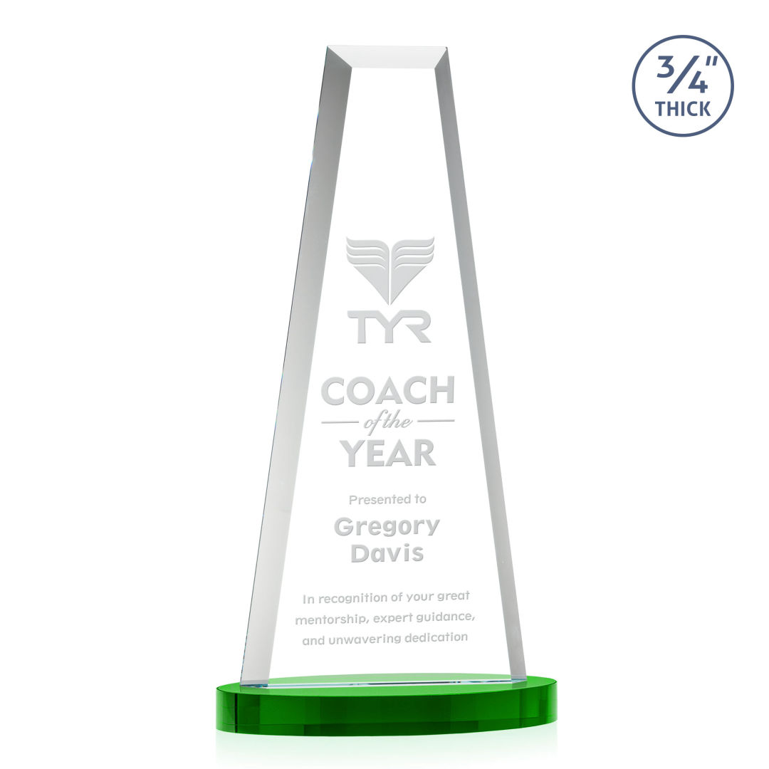 The elegant Imperial Award reflects a 0.75″ thick Starfire Crystal tower and showcases stoic bevels throughout the piece. With an opulent Starfire Crystal Alberton base, this striking award is an outstanding recognition gesture. 6.0″ W x 11.0″ H x 3.0″ D
