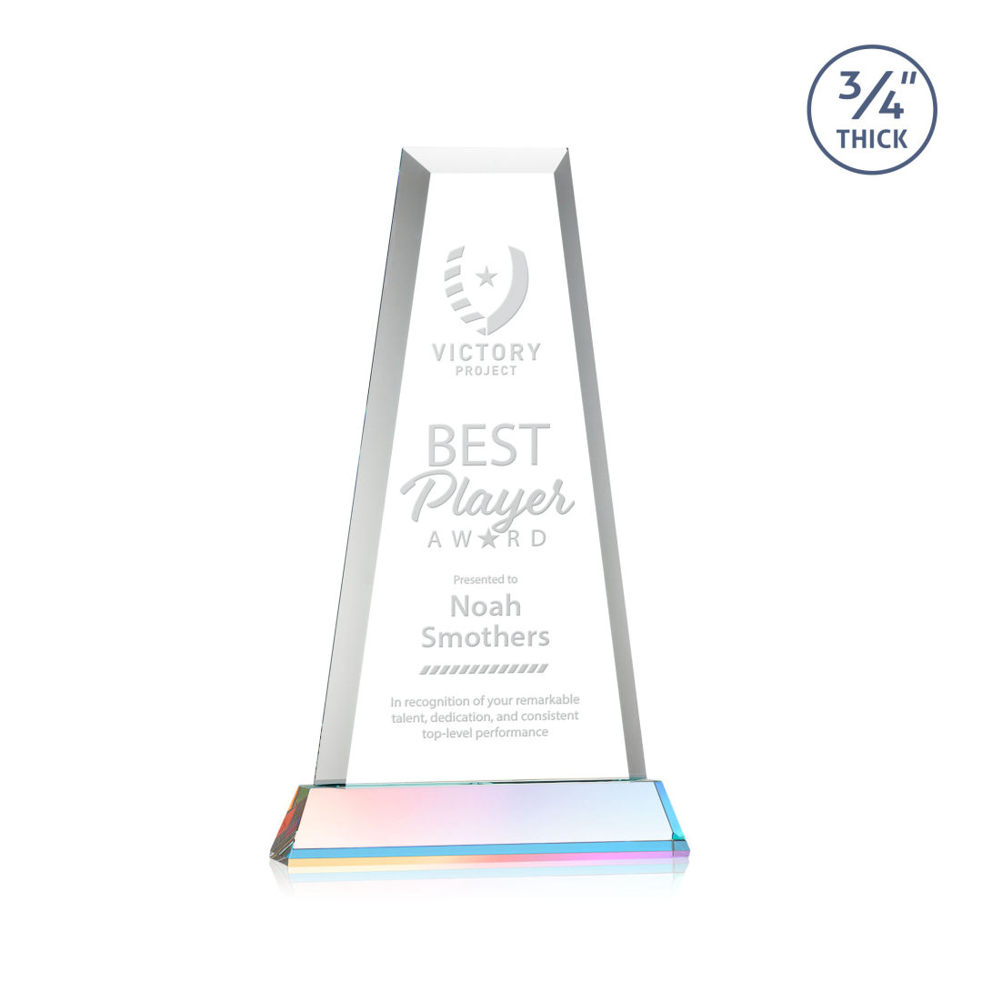 The elegant Imperial Award reflects a 0.75″ thick Starfire Crystal tower and showcases stoic bevels throughout the piece. With an opulent Starfire Crystal Newhaven base, this striking award is an outstanding recognition gesture. 7.0″ W x 11.5″ H x 2.0″ D
