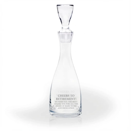 The In Vino Veritas Wine Decanter is the perfect gift for the entertainer or connoisseur of fine beverages. It’s made of mouth blown glass and holds 40 ounces of your favorite libation. The decanter offers two engraving spaces – one the front and on the top of the stopper. Let us engrave a monogram, corporate logo or simple sentiment to make it the best personalized gift! Our art department can help you with the layout of your text and/or logo. 15″ H x 4.75″ W x 4.75″ D