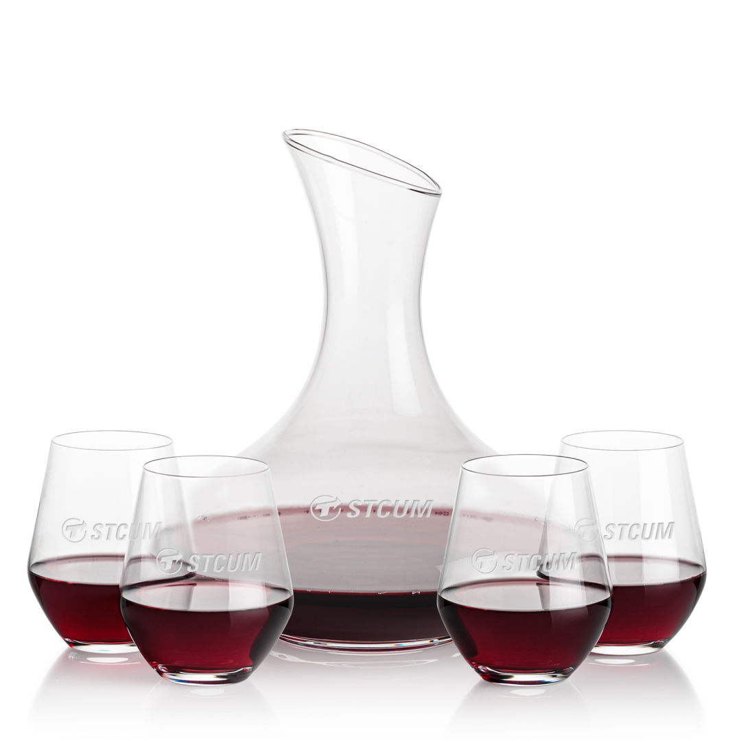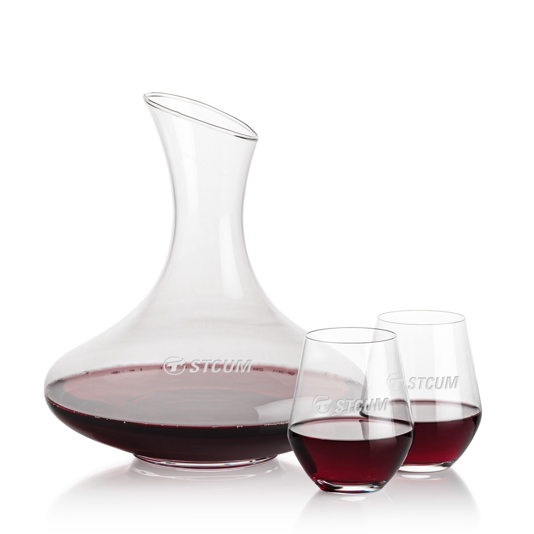 The large 50oz capacity and wide bowl of the Lead-Free Crystalline Innisfil Carafe is perfect for serving full-bodied red wines like cabernet sauvignon. Paired with 2 or 4 of our Reina Stemless Crystalline wine glasses and packaged in a satin-lined gift box to make an elegant gift for a special VIP or deserving employee.