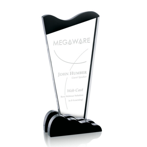 Beautiful Combination of Clear & Black Optical CrystalUnique shape to the award & to the base. 5.75″ W x 11.75″ H