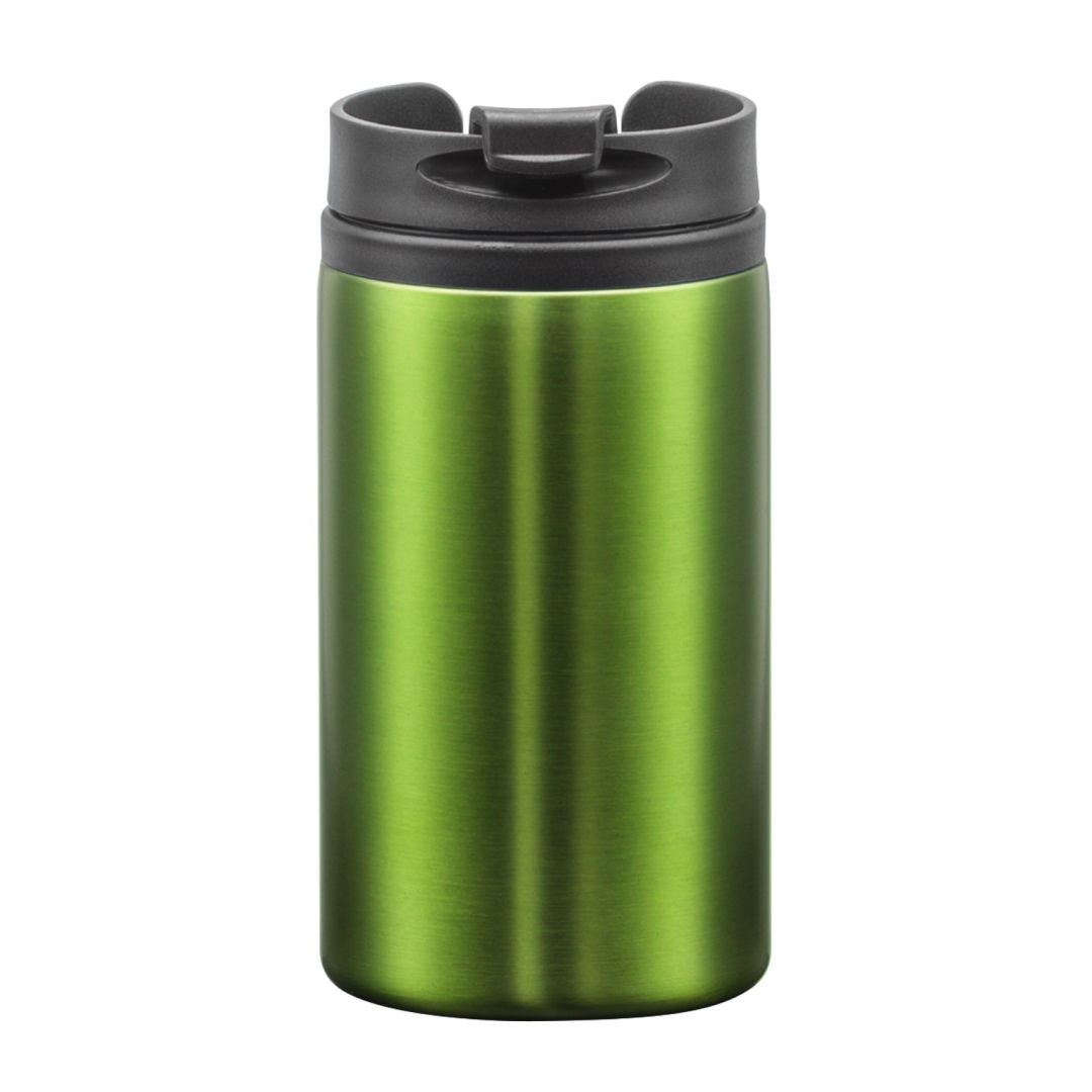 Polished, single wall travel tumbler- Easy flip spout with spill proof closure- Screw on lid for maximum leak protection – Non slip bottom – Fits in most standard cup holders- Available in 7 stylish colors – Thermoplastic inner liner. 2.625″ W x 5.75″ H