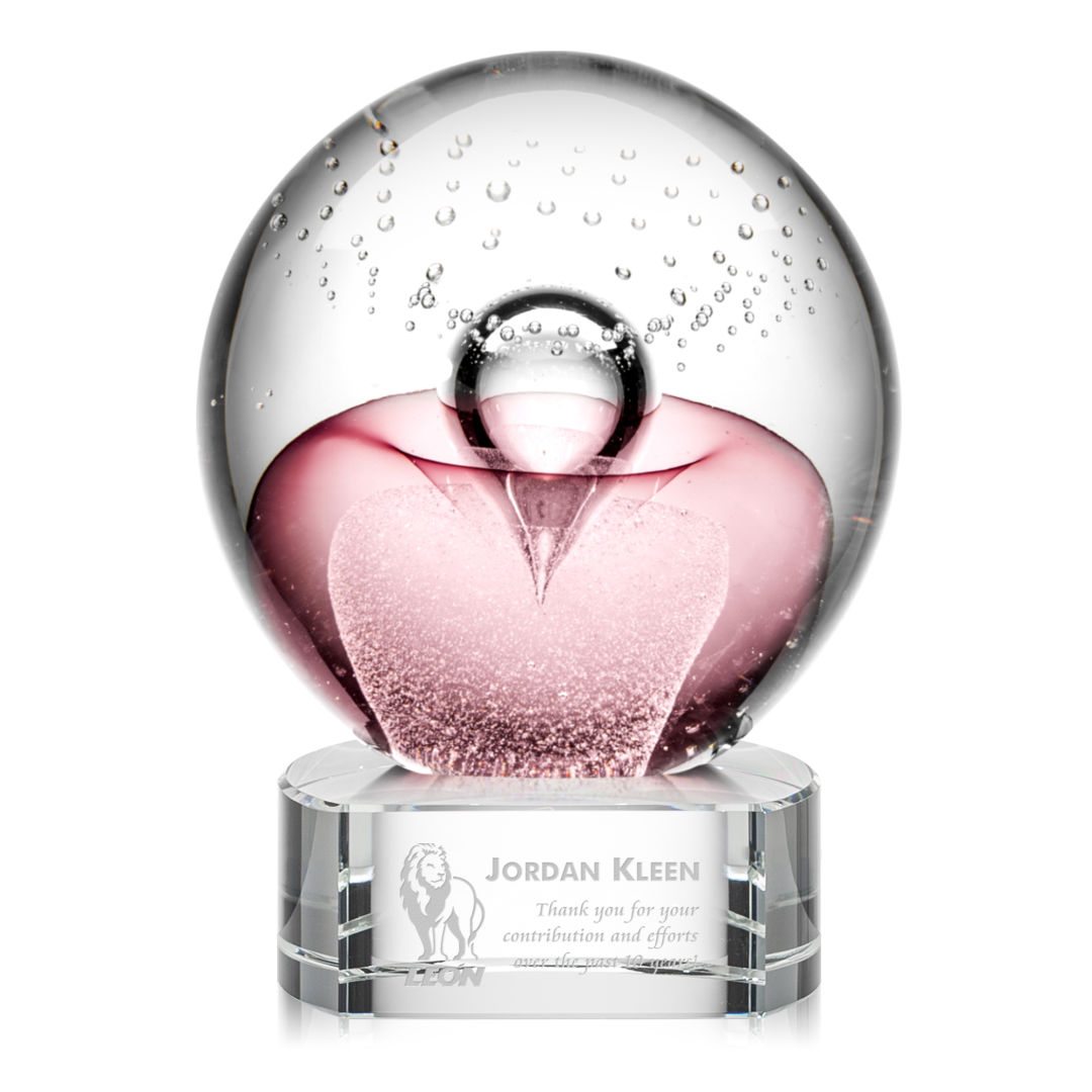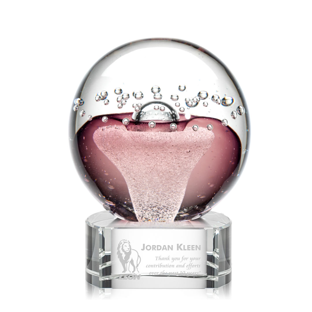 The Jupiter Award featuring a cosmic display of ruby red art glass and clear bubbles to create a majestic award to commemorate your special achievement. Mounted on an Optical Crystal Paragon base in clear or black. Each piece is individually handcrafted and no two pieces are identical. 4.0″ W x 5.5″ H