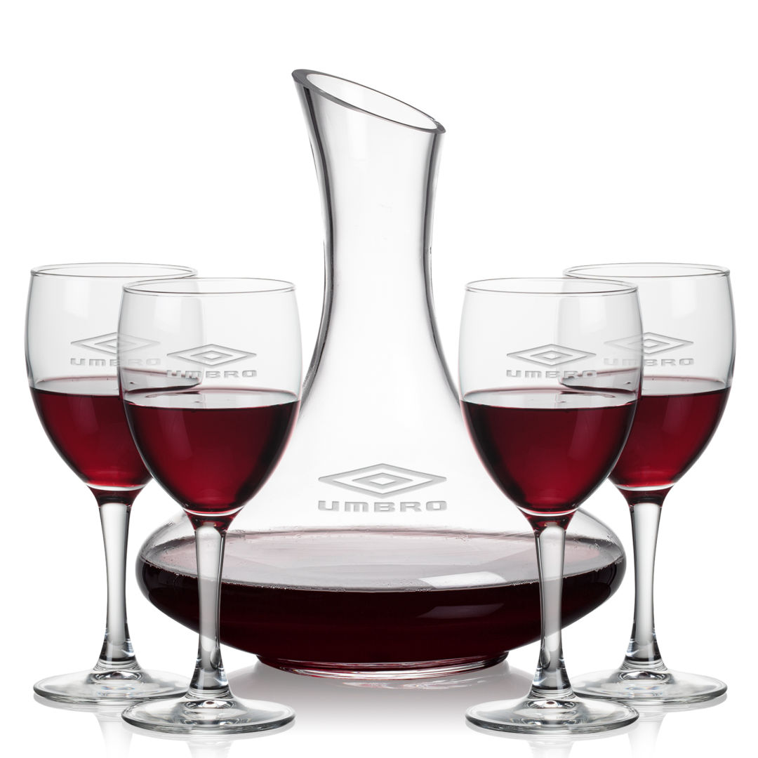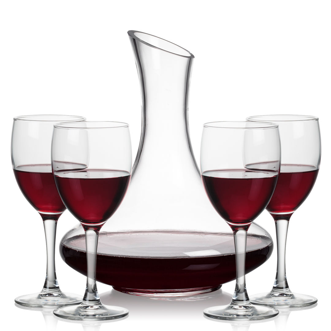 Transfer your favorite vintage to our beautiful Kanata Carafe. This stunning carafe is paired with our classic Carberry 8.5oz Stemmed Wine Glass, featuring a wide bowl allowing the aromas to intensify. A perfect all-purpose wine glass. This set makes for an elegant gift for any occasion. Packaged in sets of 2’s or 4’s and includes a black satin lined gift box.
