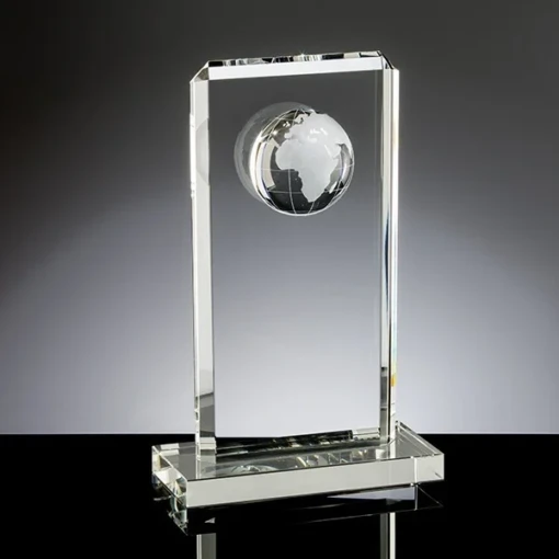 The Kelsey Globe is manufactured from the finest quality K9 Clear Optic Crystal. This classic vertical column is beveled on both sides and the top. An Optic Crystal half globe is seamlessly bonded to the front face. Each Kelsey Globe comes in a premium quality presentation box. It is available as a blank for engravers, or if you prefer we can do the engraving for you. 6″ L x 2.7″ W x 9.5″ H