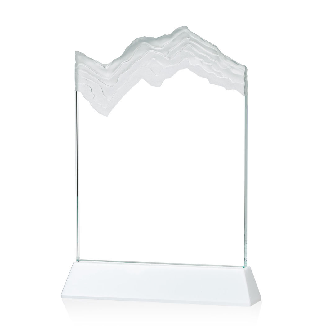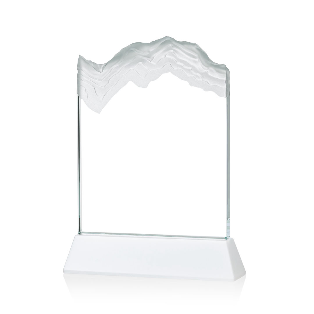 The stunning Kilimanjaro VividPrint™ award features deep carved and frosted peaks in 3/4″ thick Starfire Crystal. Mounted on the tall tapered Optical Crystal Newhaven Base. A perfect award for a momentous achievement. Let your message POP! with full color VividPrint™! 2nd position optional. 5.0″ W x 7.5″ H x 2.0″ D