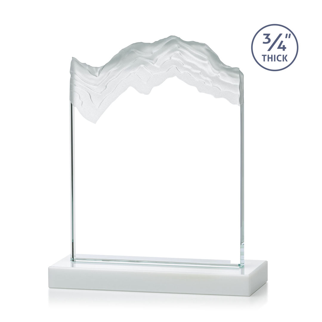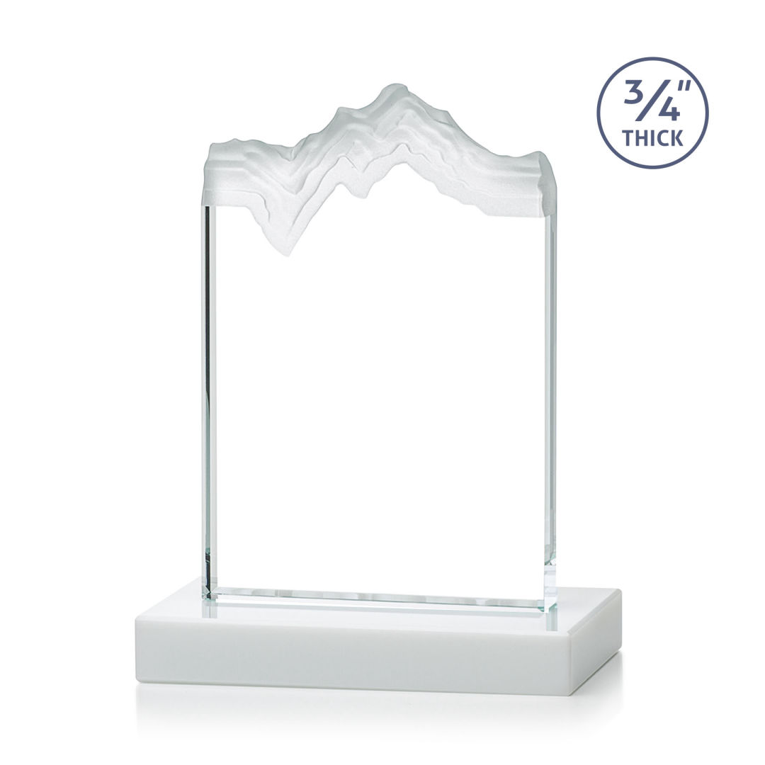 The stunning Kilimanjaro VividPrint™ Award features deep carved and frosted peaks in 3/4″ thick Starfire Crystal. Mounted on a thick flat-edge starfire base in your choice of 8 distinct colors. A perfect award for a momentous achievement. Let your message POP! with full color VividPrint™! 4.0″ W x 6.0″ H x 0.75″ D