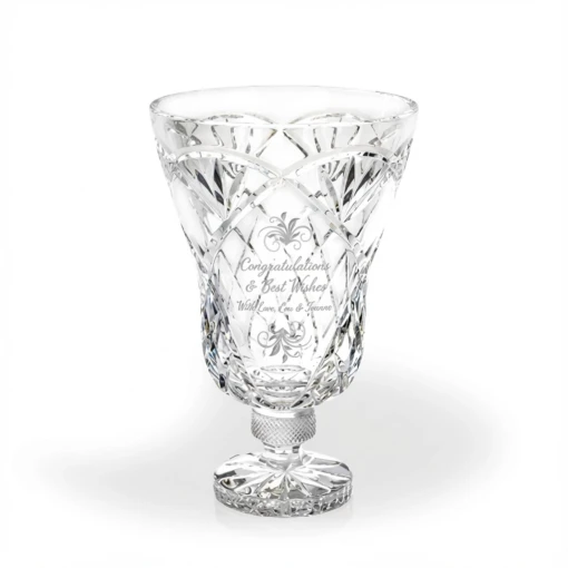 The majestic Kolo Crystal Trophy Bowl Award is a beautifully cut, leaded crystal bowl on a pedestal, perfect for display at work or on bookcase or lobby table. The Kolo Crystal Trophy Bowl Award is an impressive piece. On the front of the trophy bowl is space for engraving logos and award information. 24% Lead Crystal made in Poland. Complies with Prop 65. 12″ H x 7.75″ W x 7.75″ Diameter