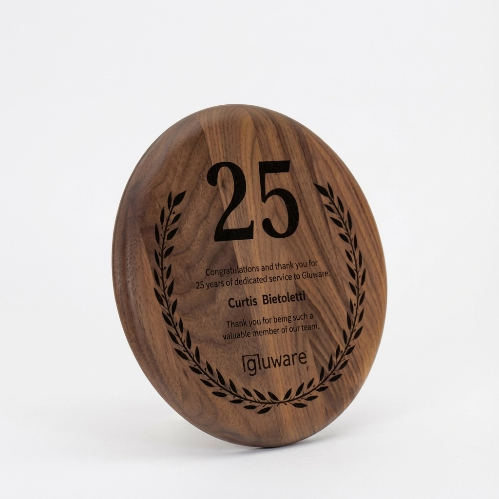 The La Noix Round Wood Plaque offers a distinguished and timeless way to honor exceptional accomplishments. Crafted from high-quality wood, this 10.5-inch diameter plaque provides a substantial and impressive canvas for showcasing achievements. Its classic round silhouette and natural wood grain lend an air of sophistication, making it an ideal choice for corporate awards, academic distinctions, sporting triumphs, or personal milestones.