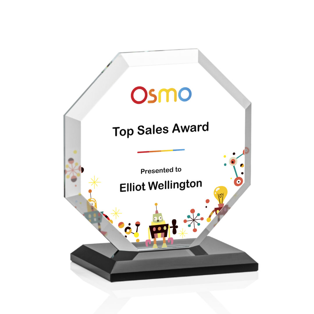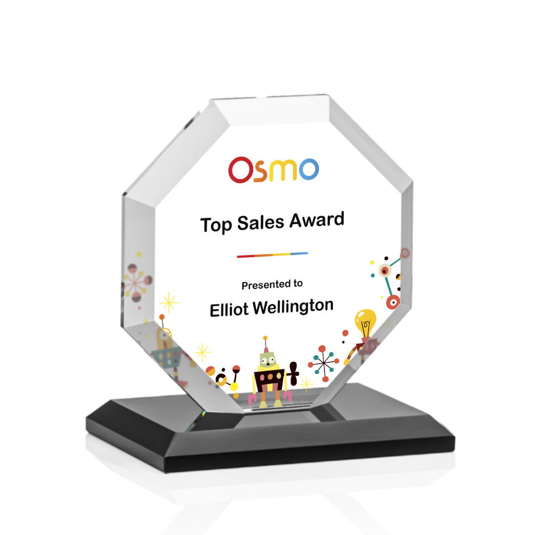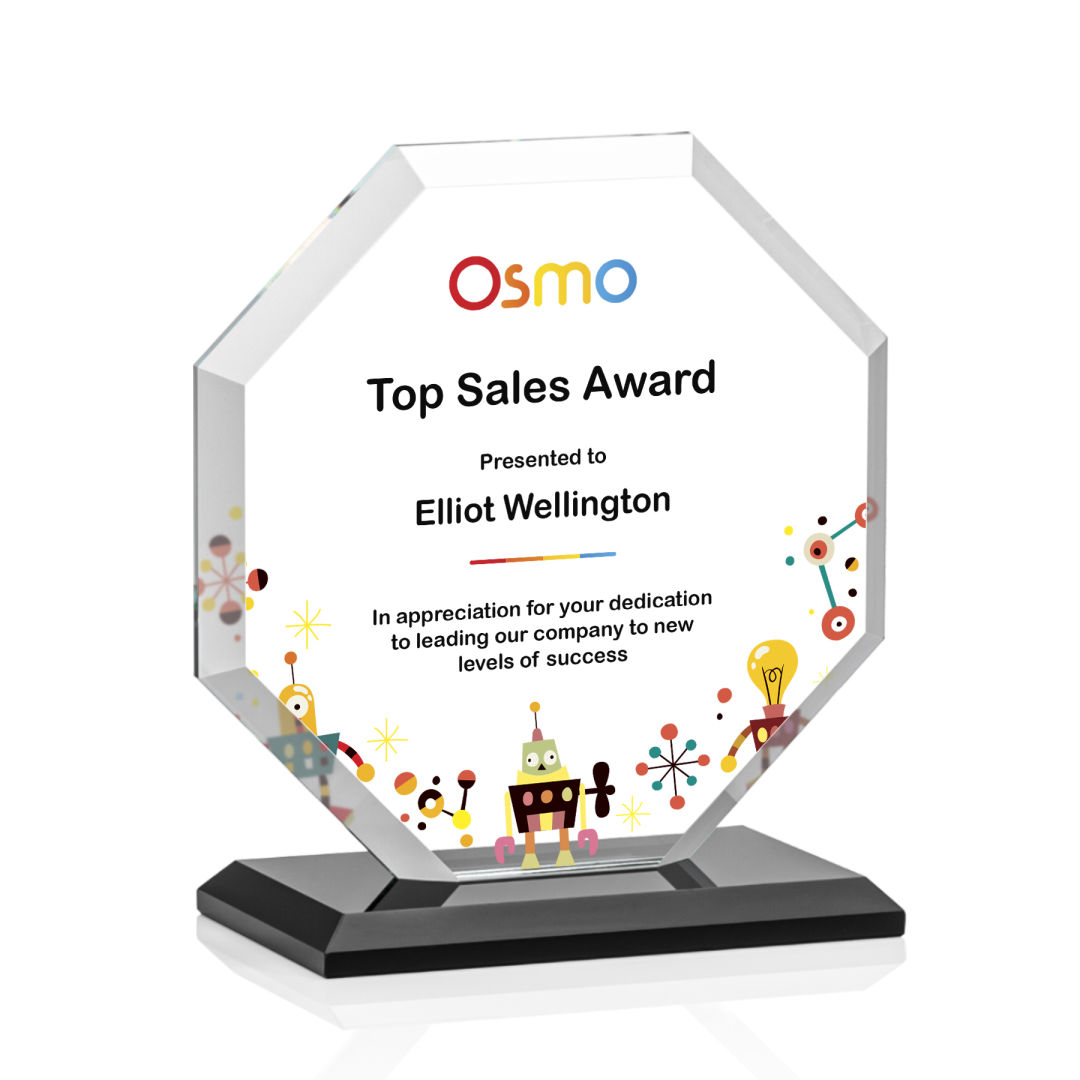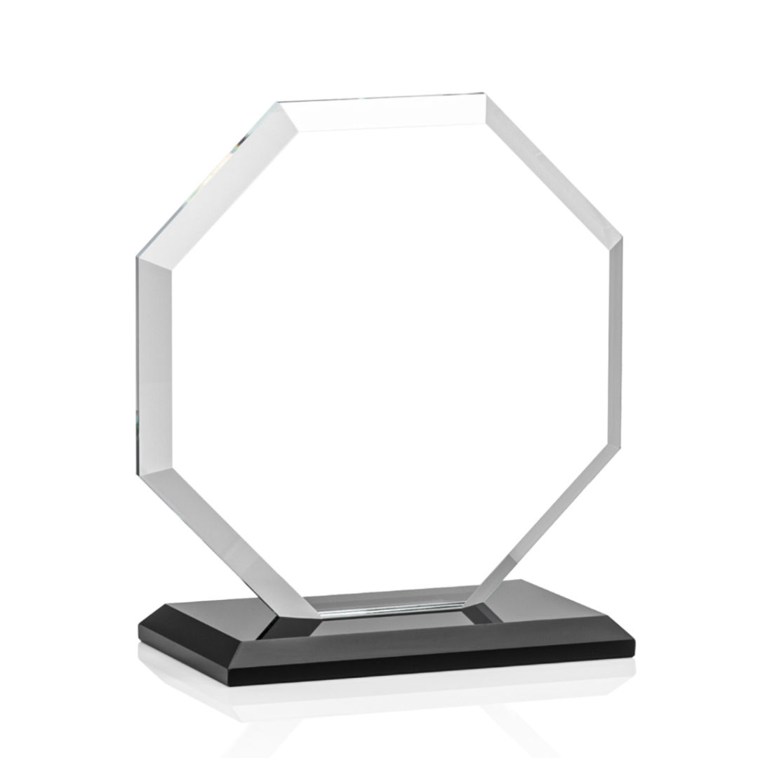 The Layland VividPrint™ Award features a beautifully beveled Starfire Crystal Octagon mounted on your choice of 9 distinct bases. The large decorating area is highlighted by the deep mitered edges that frame your outstanding achievement with refracted light. 4.0″ W x 4.5″ H