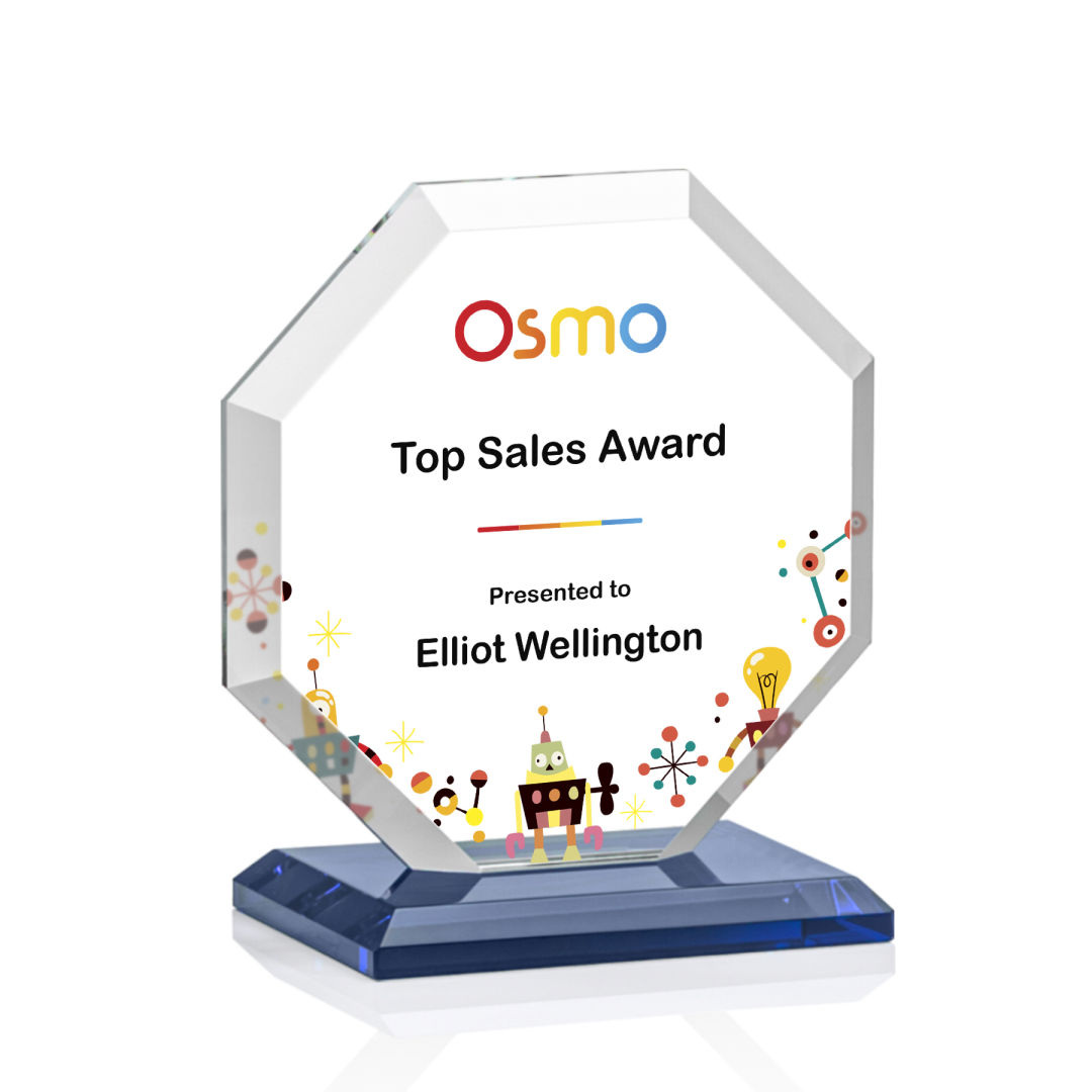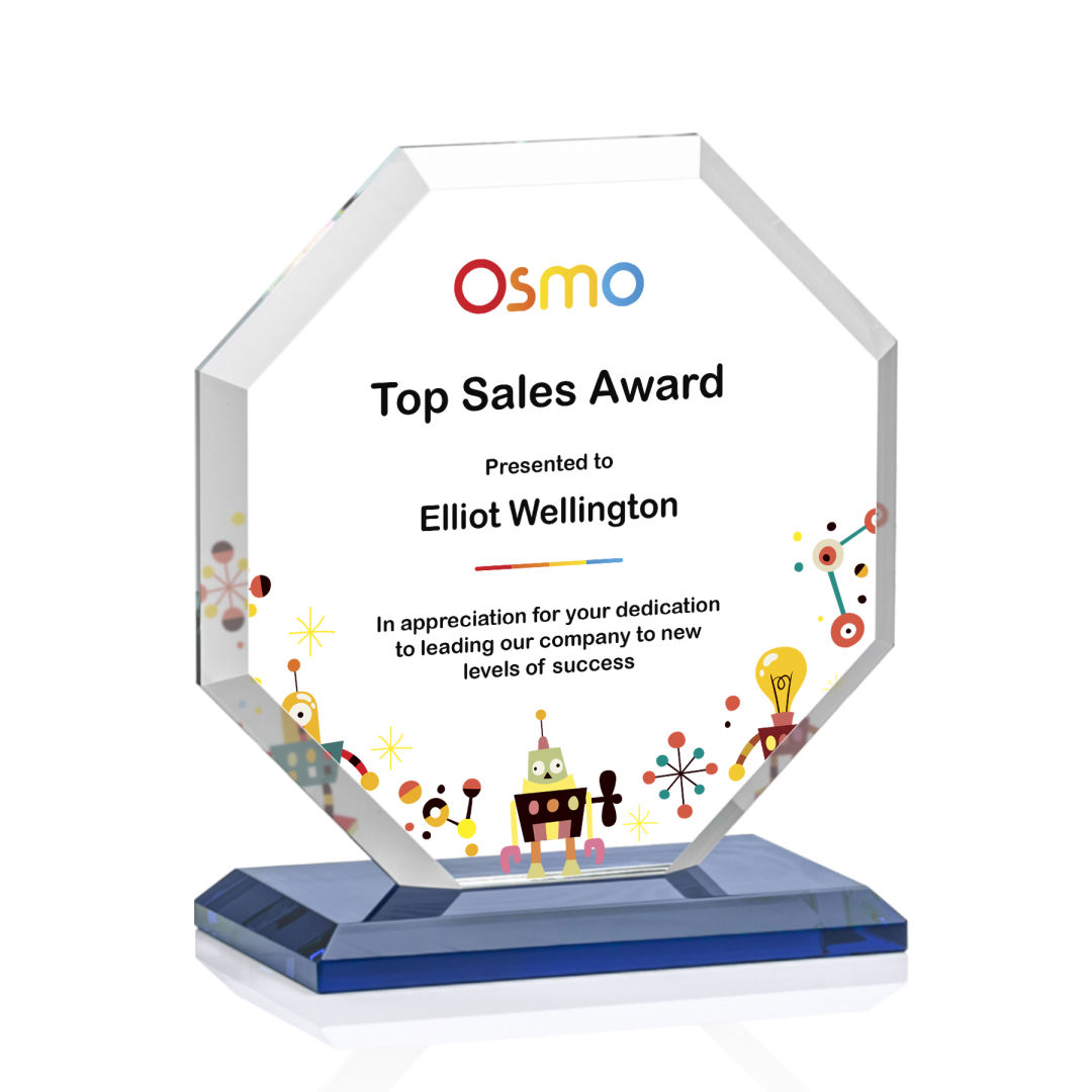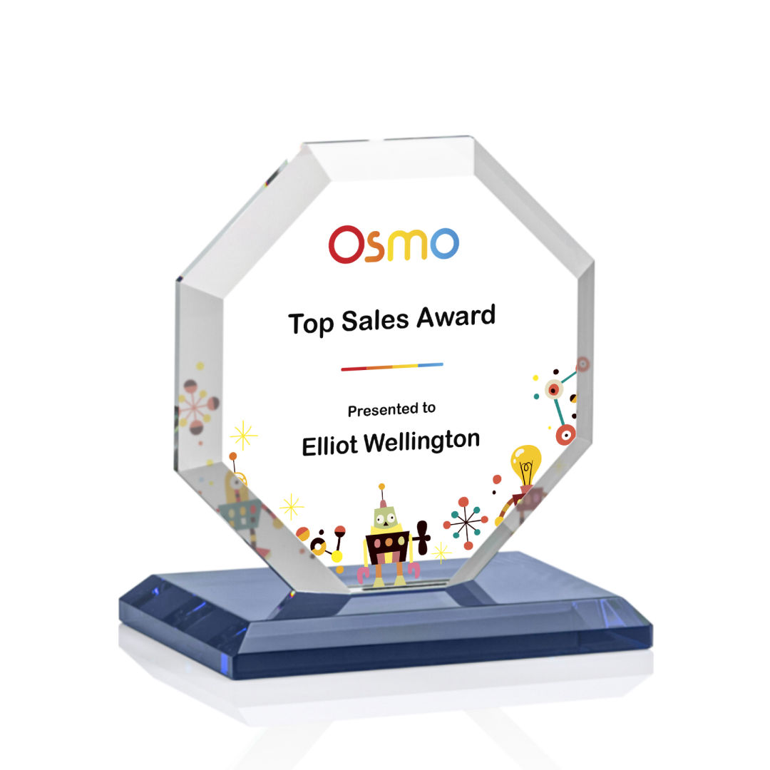 The Layland VividPrint™ Award features a beautifully beveled Starfire Crystal Octagon mounted on your choice of 9 distinct bases. The large decorating area is highlighted by the deep mitered edges that frame your outstanding achievement with refracted light. 4.0″ W x 4.5″ H