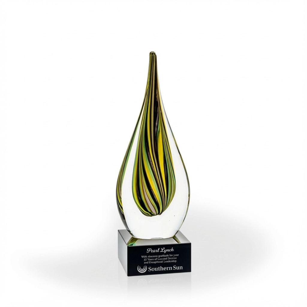 The Linden Flame Art Glass Award is a breathtaking testament to accomplishment, designed to honor outstanding individuals and organizations. Each piece is a unique, hand-blown glass sculpture, capturing the dynamic essence of a flickering flame. The vibrant colors and intricate patterns within the glass create a mesmerizing visual spectacle, ensuring that every award is a one-of-a-kind masterpiece.