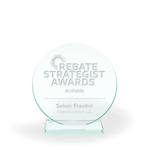 The Circle of Success Jade Glass Award is a very versatile award. The glass circle has a lovely light green tint to it and is highly polished. With multiple sizes, ample engraving space, and a budget friendly price, this award is a great option for many award programs. The Luminary has been used in just about every award category we’ve seen, from sales awards and company anniversary gifts, to volunteer recognition and dealers. 8.25″ H x 8″ W x 2.75″ D