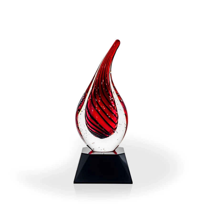 The Malden Flame Art Glass Award is a lovely art glass award that’s sure to impress your recipient. Art glass awards are a great option when you want to add a colorful and unique award to your event. The base is etched and color filled in Silver. Art glass awards are hand blown, and each piece will be slightly different in color, shape, and size. Bubbles and swirls are a part of the process and are considered normal and acceptable. 10″ H x 4.5″ W x 4.5″ D