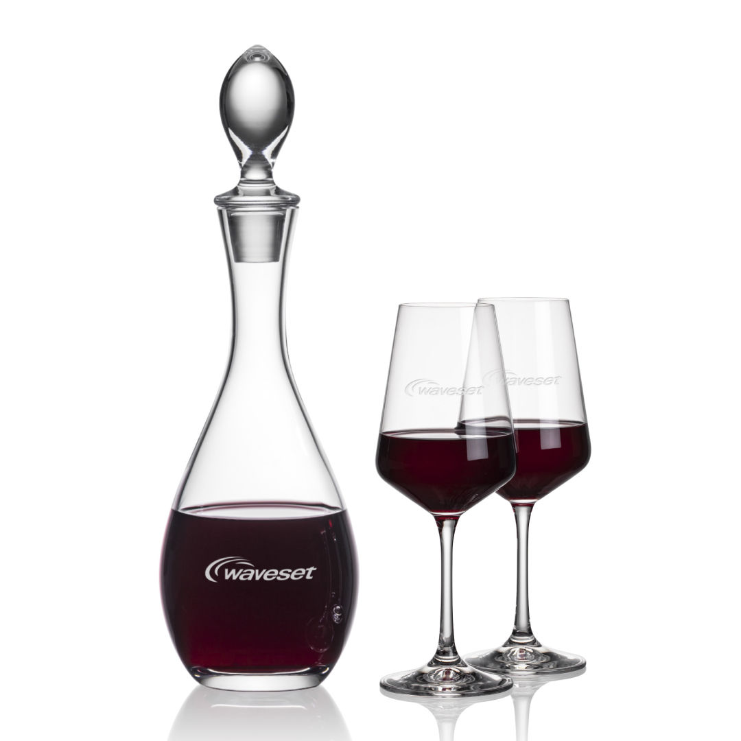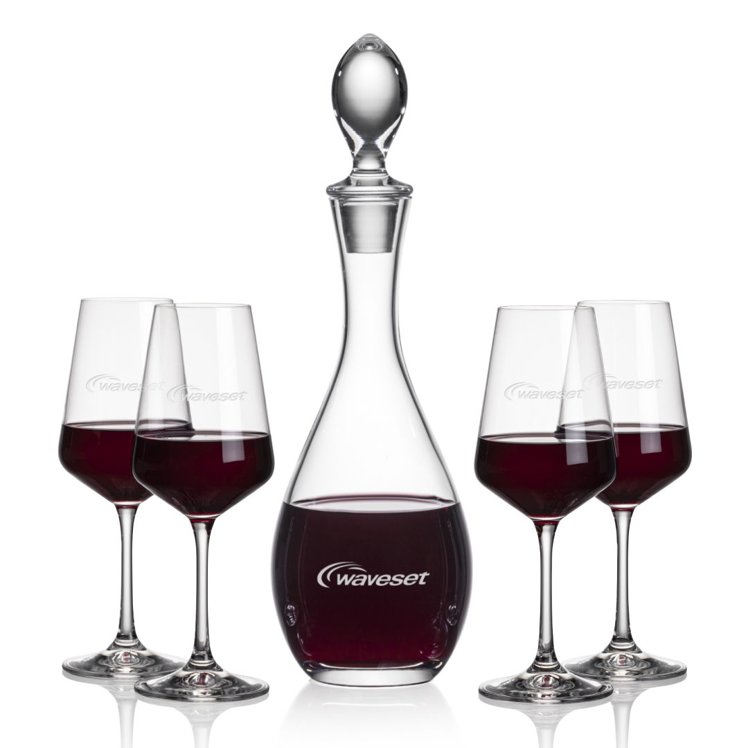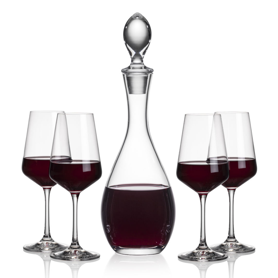 The Malvern Decanter features an elegantly curved shape that will transform your wine to enhance your tasting pleasure. Paired with our Cannes 12oz Stemmed Wine Glass, featuring a deep bowl and tapered sides making it perfect for aerating and swirling your favorite vintage. This set is complete with an complimenting stopper. Lead Free Crystalline. Available in 2 or 4 wine glasses set.