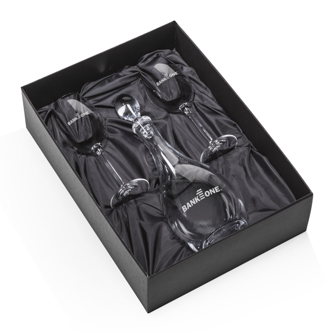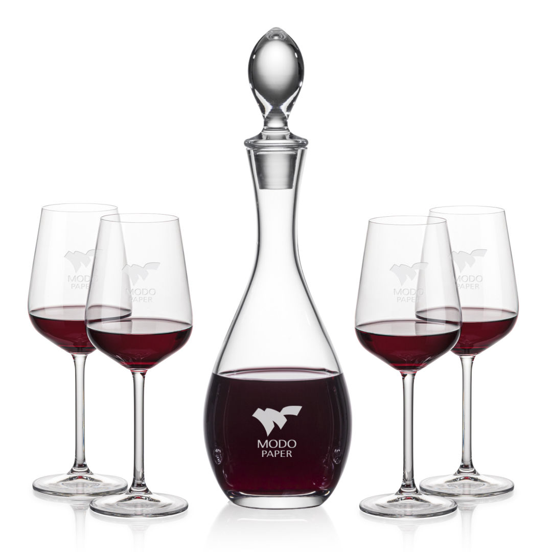 The Malvern Decanter features an elegantly curved shape that will transform your wine to enhance your tasting pleasure. Paired with our Elderwood 16oz Stemmed Wine Glass, featuring a wide bowl and fine cut rims perfect for enjoying bold red wines. This set is complete with an complimenting stopper. Lead Free Crystalline. Available in sets with 2 or 4 wine glasses.