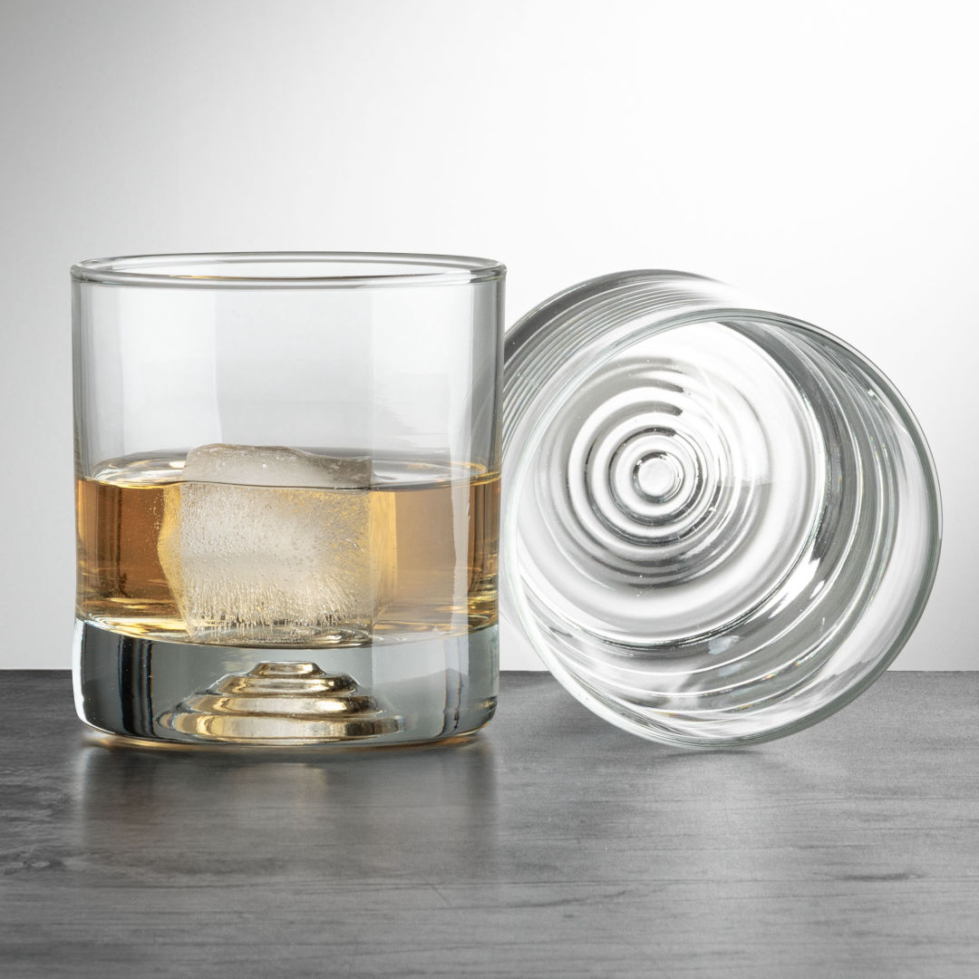 The Marbella On-the-Rocks is a unique glass that everyone will adore. This 9.5oz glass features a molded and heavy sham with a circular stepped accent at the bottom of the glass, creating a neat ripple effect when looking from the top of the glass. This lowball glass will be your go-to for all your favorite whiskeys or a classic old-fashioned. Product Size: 3.125″ W x 3.375″ H. 3.125″ W x 3.375″ H