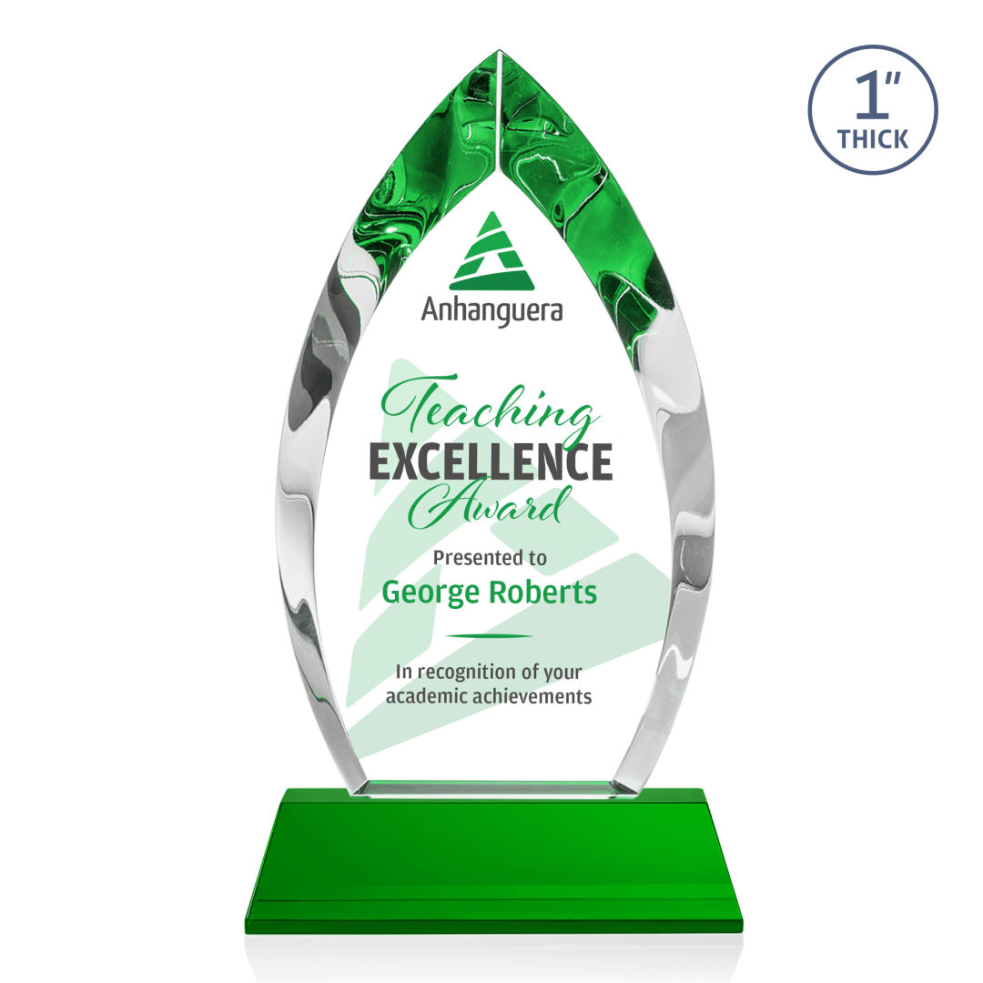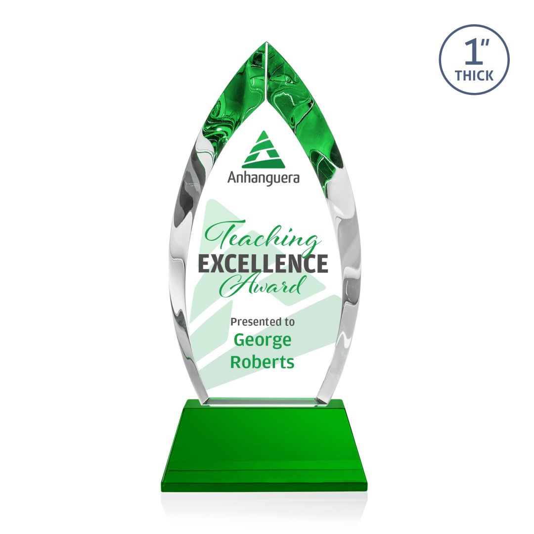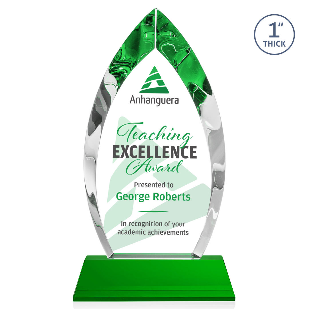 Make a statement of distinction with the Optical Crystal Marinello VividPrint™ Award on base, boasting deep bevels that exude elegance. The color crystal accent at the bottom of the awards reflects throughout the award captivating attention and adding a unique touch to any recognition ceremony. Matching base available in your choice of 9 different colors. Presented in a sleek black satin-lined gift box. 2nd position on base is optional. 4.0″ W x 8.5″ H x 2.0″ D