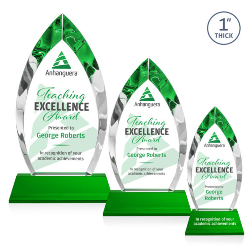 Make a statement of distinction with the Optical Crystal Marinello VividPrint™ Award on base, boasting deep bevels that exude elegance. The color crystal accent at the bottom of the awards reflects throughout the award captivating attention and adding a unique touch to any recognition ceremony. Matching base available in your choice of 9 different colors. Presented in a sleek black satin-lined gift box. 2nd position on base is optional. 4.0″ W x 8.5″ H x 2.0″ D
