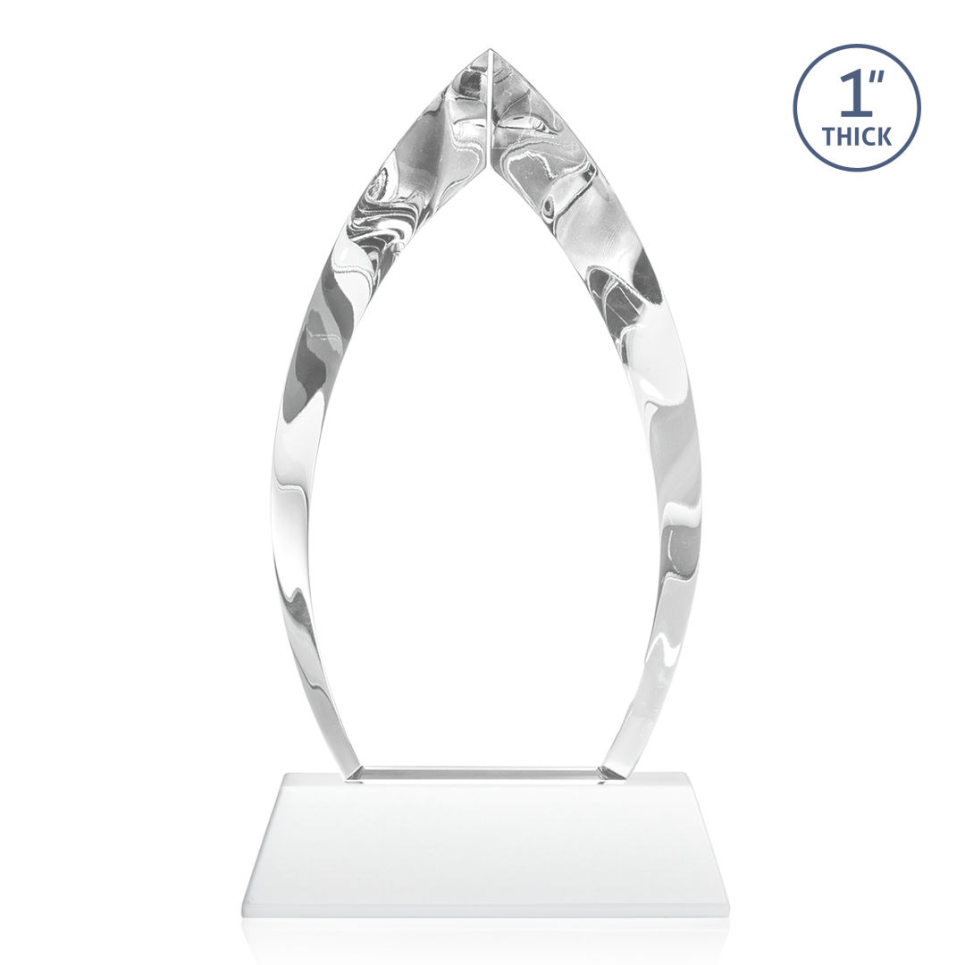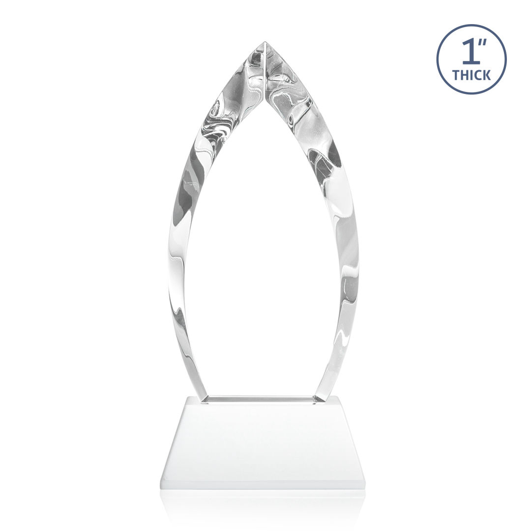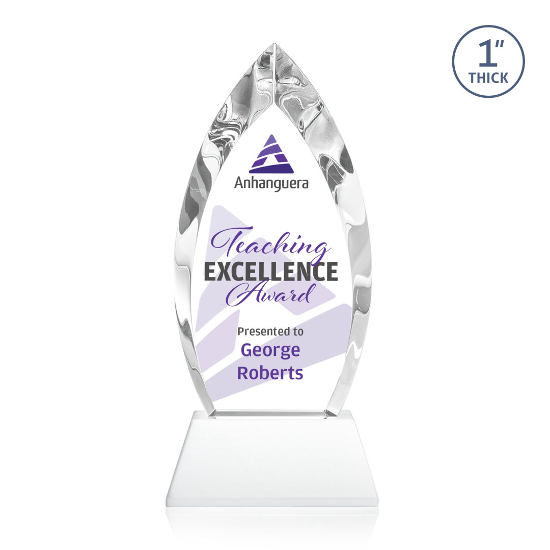 Make a statement of distinction with the Optical Crystal Marinello VividPrint™ Award on base, boasting deep bevels that exude elegance. The color crystal accent at the bottom of the awards reflects throughout the award captivating attention and adding a unique touch to any recognition ceremony. Matching base available in your choice of 9 different colors. Presented in a sleek black satin-lined gift box. 2nd position on base is optional. 4.0″ W x 8.5″ H x 2.0″ D