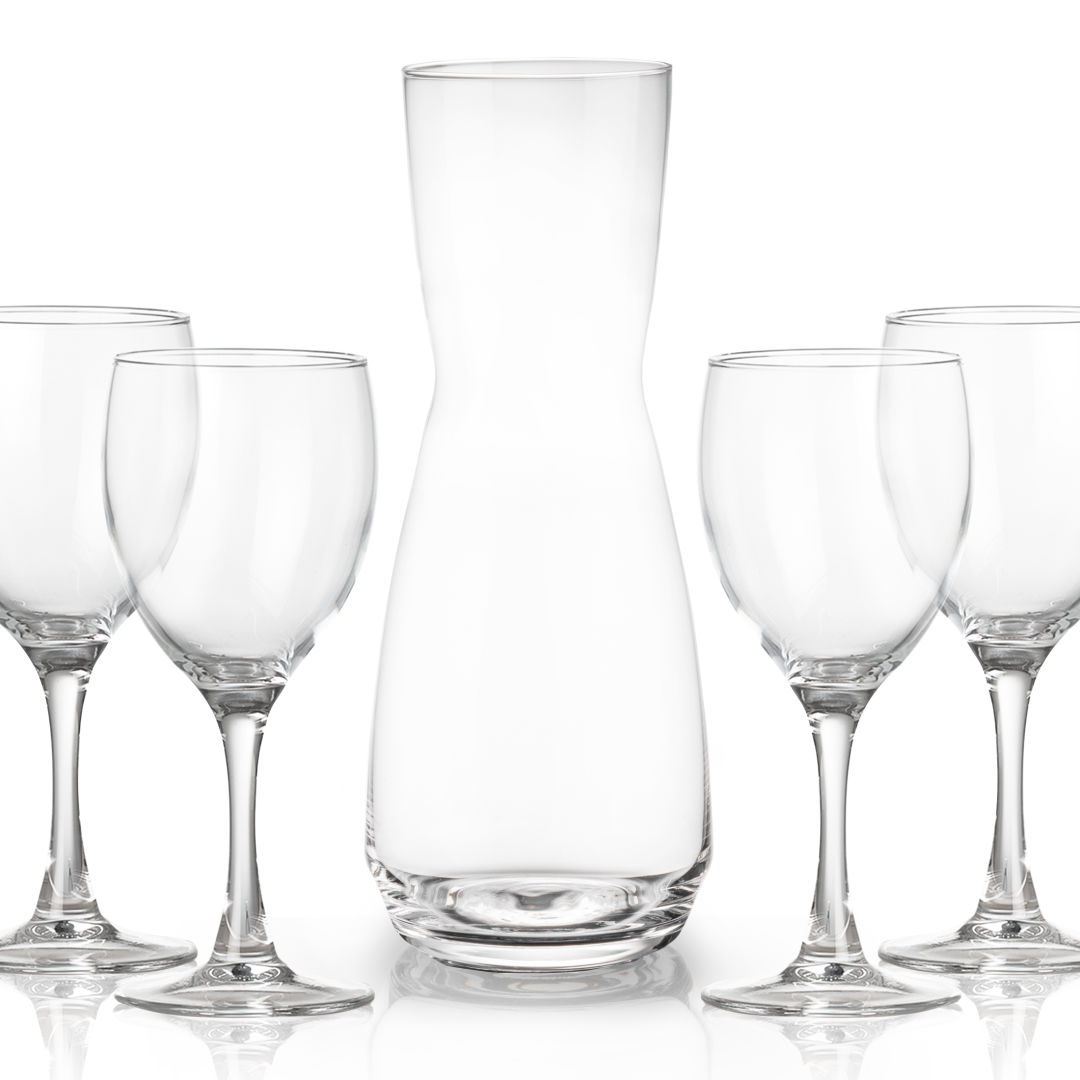 The Mason Carafe & Wine Glass Set pairs the elegant Mason Wine Carafe with two complementing stemmed wine glasses, creating a refined presentation for any occasion. The carafe’s sleek curves and the glasses’ timeless design make this set ideal for sharing and savoring fine wines. Available with a variety of different wine glass styles.