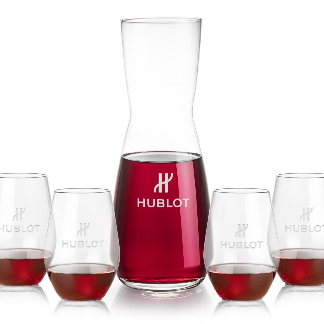 The Mason Carafe & Wine Glass Set pairs the elegant Mason Wine Carafe with two complementing stemless wine glasses, creating a refined presentation for any occasion. The carafe’s sleek curves and the glasses’ timeless design make this set ideal for sharing and savoring fine wines. Available with a variety of different wine glass styles.