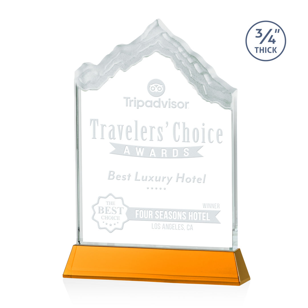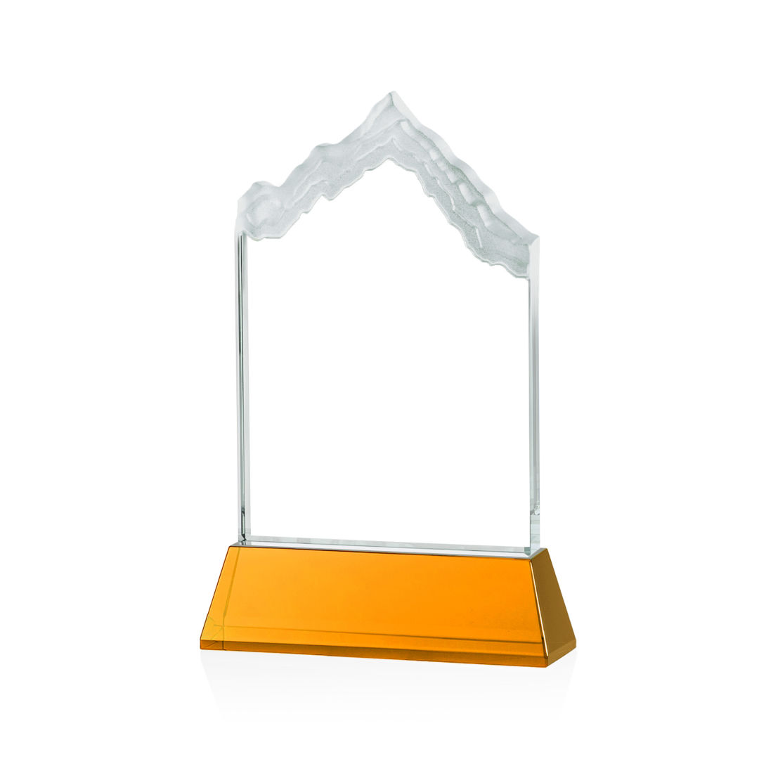 The highest mountain peak in North America, Mount McKinley is synonymous with the beauty and awe-inspiring natural wonder that is Alaska, the Last Frontier. Featuring 3/4″ thick Starfire Crystal, this stunning award is mounted on your choice of clear or colored Optical Crystal Newhaven Base. Memorialize your special achievement with a deep etched and frosted monument to one of North America’s most stunning peaks. Second position etch on base optional. 5.0″ W x 7.5″ H x 2.0″ D