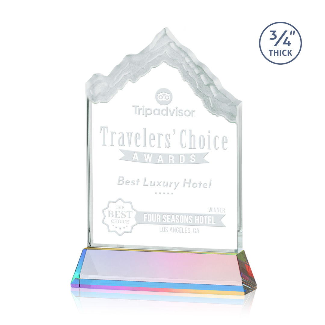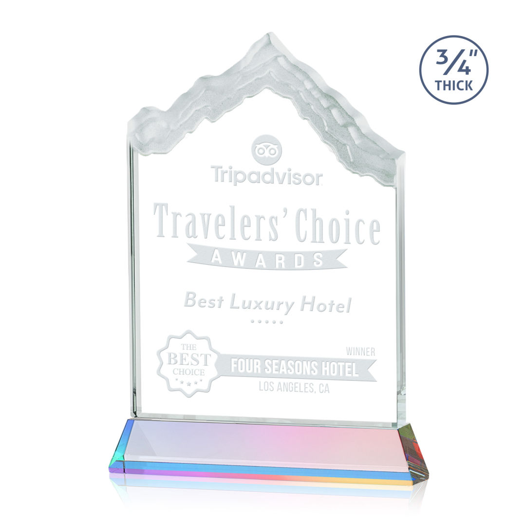 The highest mountain peak in North America, Mount McKinley is synonymous with the beauty and awe-inspiring natural wonder that is Alaska, the Last Frontier. Featuring 3/4″ thick Starfire Crystal, this stunning award is mounted on your choice of clear or colored Optical Crystal Newhaven Base. Memorialize your special achievement with a deep etched and frosted monument to one of North America’s most stunning peaks. 5.0″ W x 7.5″ H x 2.0″ D