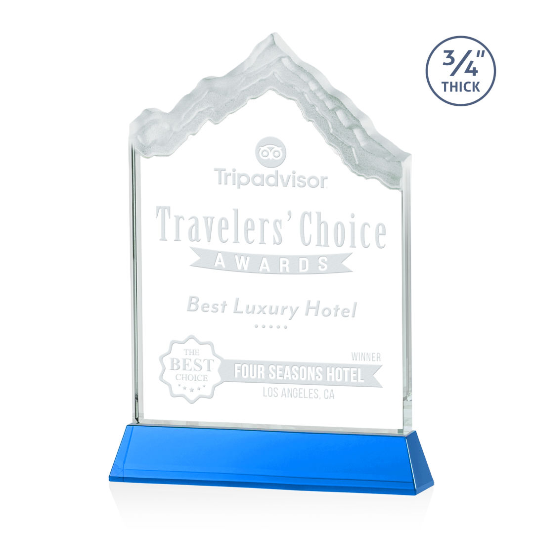 The highest mountain peak in North America, Mount McKinley is synonymous with the beauty and awe-inspiring natural wonder that is Alaska, the Last Frontier. Featuring 3/4″ thick Starfire Crystal, this stunning award is mounted on your choice of clear or colored Optical Crystal Newhaven Base. Memorialize your special achievement with a deep etched and frosted monument to one of North America’s most stunning peaks. Second position etch on base optional. 5.0″ W x 7.5″ H x 2.0″ D