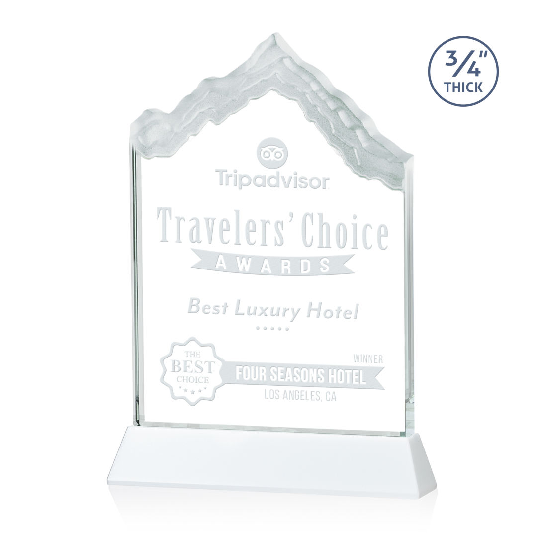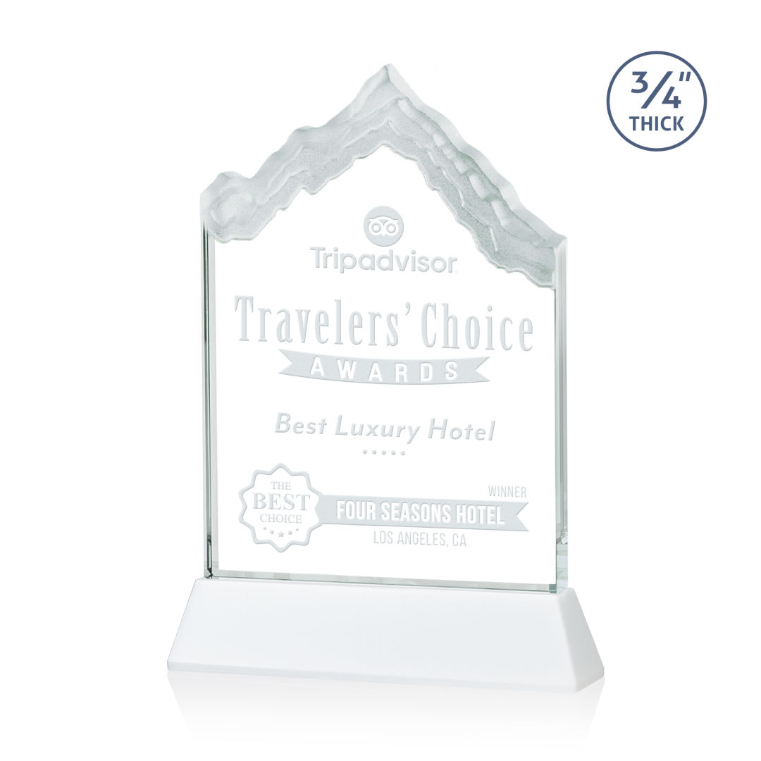 The highest mountain peak in North America, Mount McKinley is synonymous with the beauty and awe-inspiring natural wonder that is Alaska, the Last Frontier. Featuring 3/4″ thick Starfire Crystal, this stunning award is mounted on your choice of clear or colored Optical Crystal Newhaven Base. Memorialize your special achievement with a deep etched and frosted monument to one of North America’s most stunning peaks. Second position etch on base optional. 5.0″ W x 7.5″ H x 2.0″ D