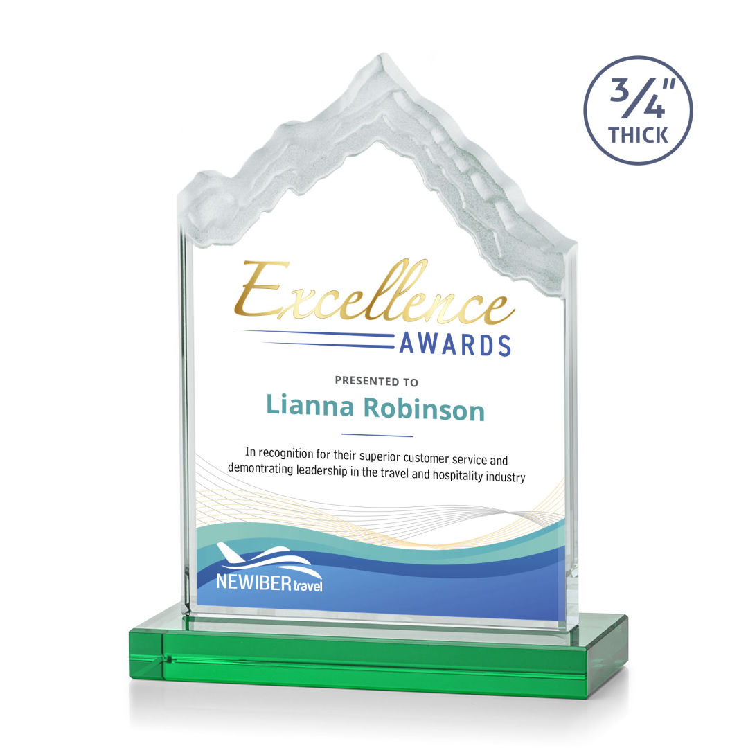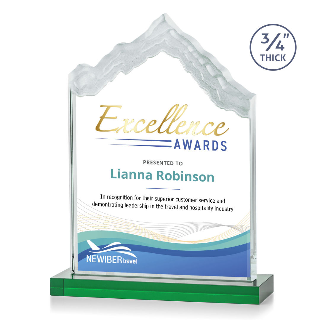 The highest mountain peak in North America, Mount McKinley is synonymous with the beauty and awe-inspiring natural wonder that is Alaska, the Last Frontier. Featuring 3/4″ thick Starfire Crystal, this stunning award is mounted on your choice of clear or colored thick rectangular Optical Crystal Base. Memorialize your special achievement with a deep etched and frosted monument to one of North America’s most stunning peaks. Let your message POP! with full-color VividPrint™. 5.0″ W x 6.75″ H x 3.0″ D