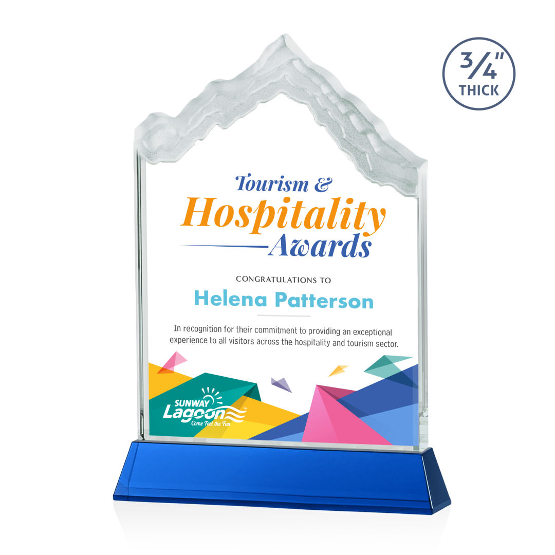 The highest mountain peak in North America, Mount McKinley is synonymous with the beauty and awe-inspiring natural wonder that is Alaska, the Last Frontier. Featuring 3/4″ thick Starfire Crystal, this stunning award is mounted on your choice of clear or colored thick Optical Crystal Newhaven Base. Memorialize your special achievement with a deep etched and frosted monument to one of North America’s most stunning peaks. Let your message POP! with full-color VividPrint™. Second position imprint on base optional. 5.0″ W x 7.5″ H x 2.0″ D