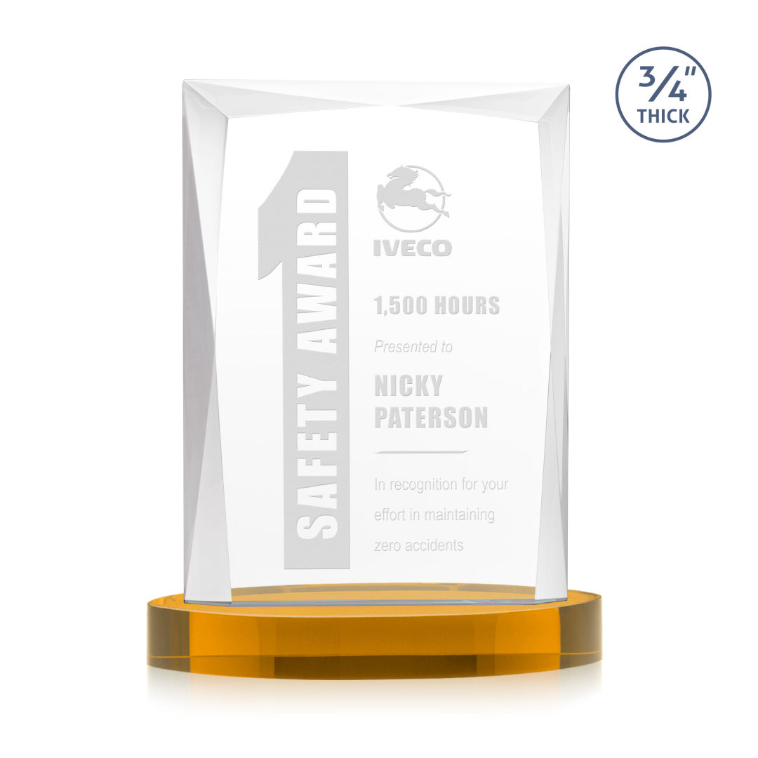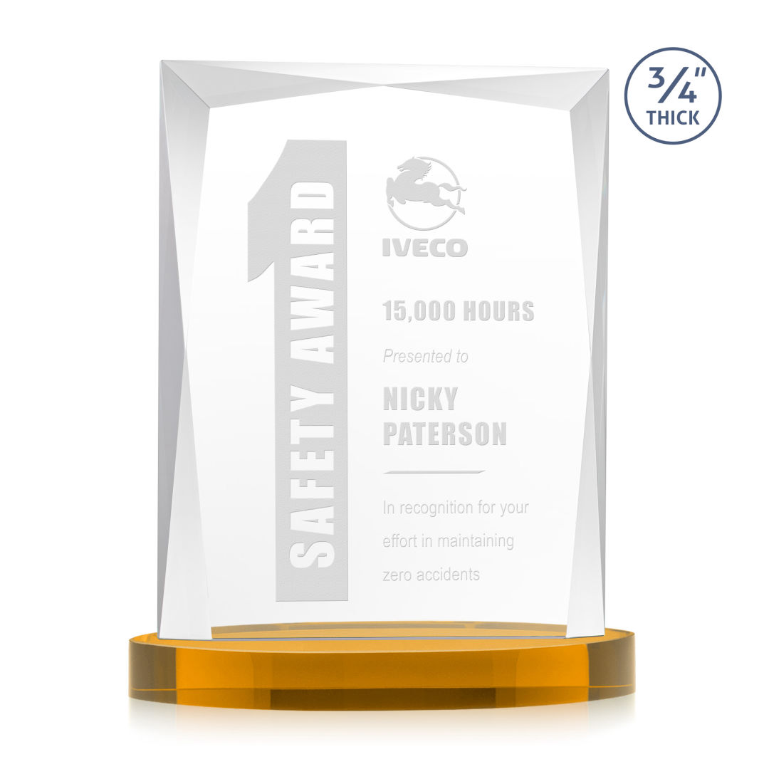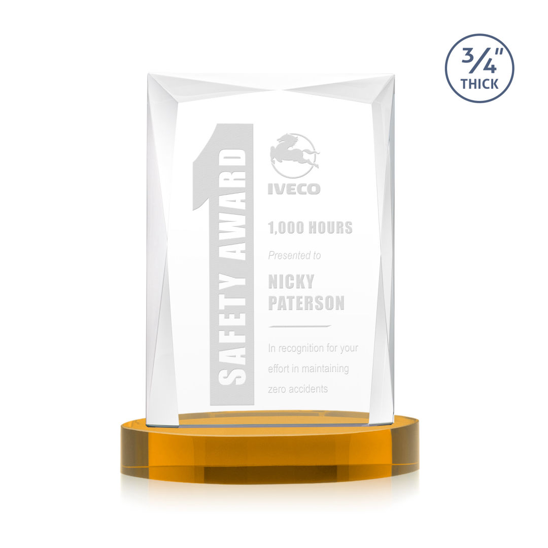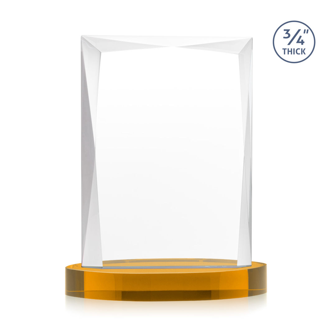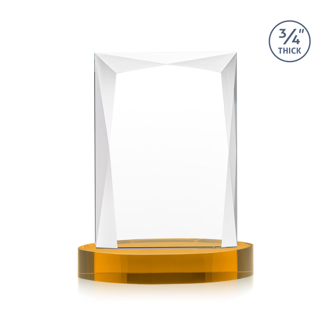 A staple of the recognition industry, the Messina on Alberton Base is a striking award in thick 3/4″ Starfire Crystal. Featuring brilliant interchanging bevels that create a beautiful frame of refracting light for your special achievement. 5.0″ W x 7.0″ H x 2.75″ D