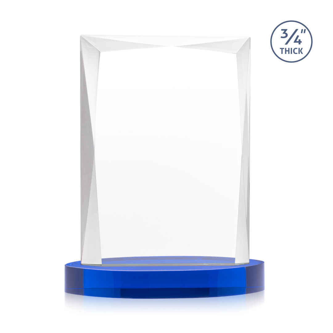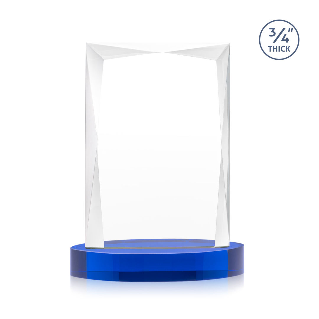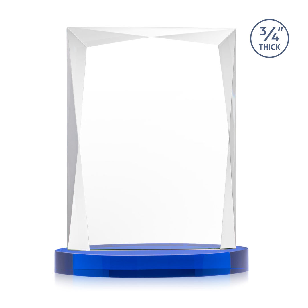 A staple of the recognition industry, the Messina on Alberton Base is a striking award in thick 3/4″ Starfire Crystal. Featuring brilliant interchanging bevels that create a beautiful frame of refracting light for your special achievement. 5.0″ W x 7.0″ H x 2.75″ D