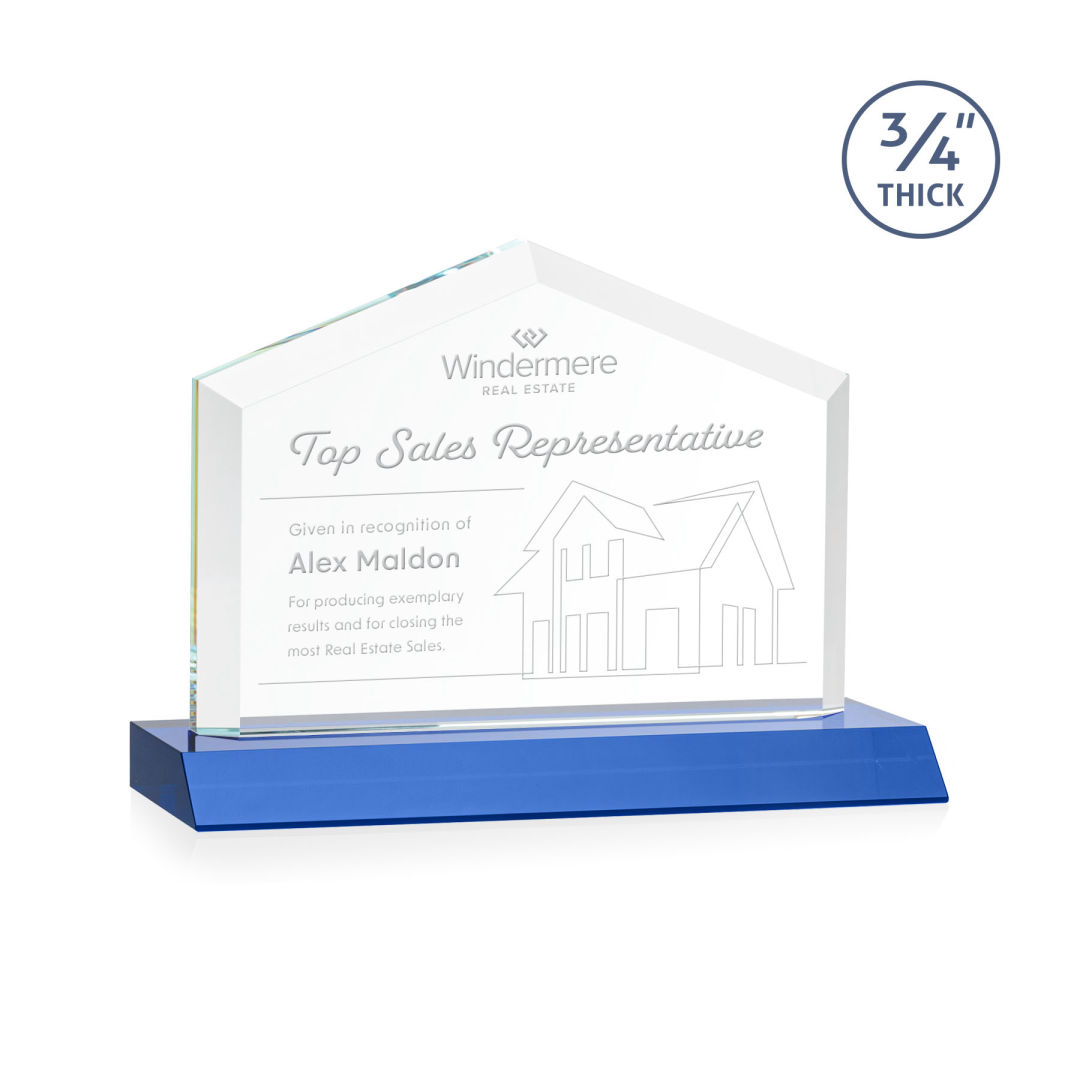 The striking Micasa award features a front beveled Starfire Crystal top and mounted on your choice of colored front mitered base. Perfect for realtors, brokerages, mortgage lenders or anyone looking to recognize excellence within the real estate industry. Second Position Etch & Colorfill Optional. 7.0″ W x 4.75″ H